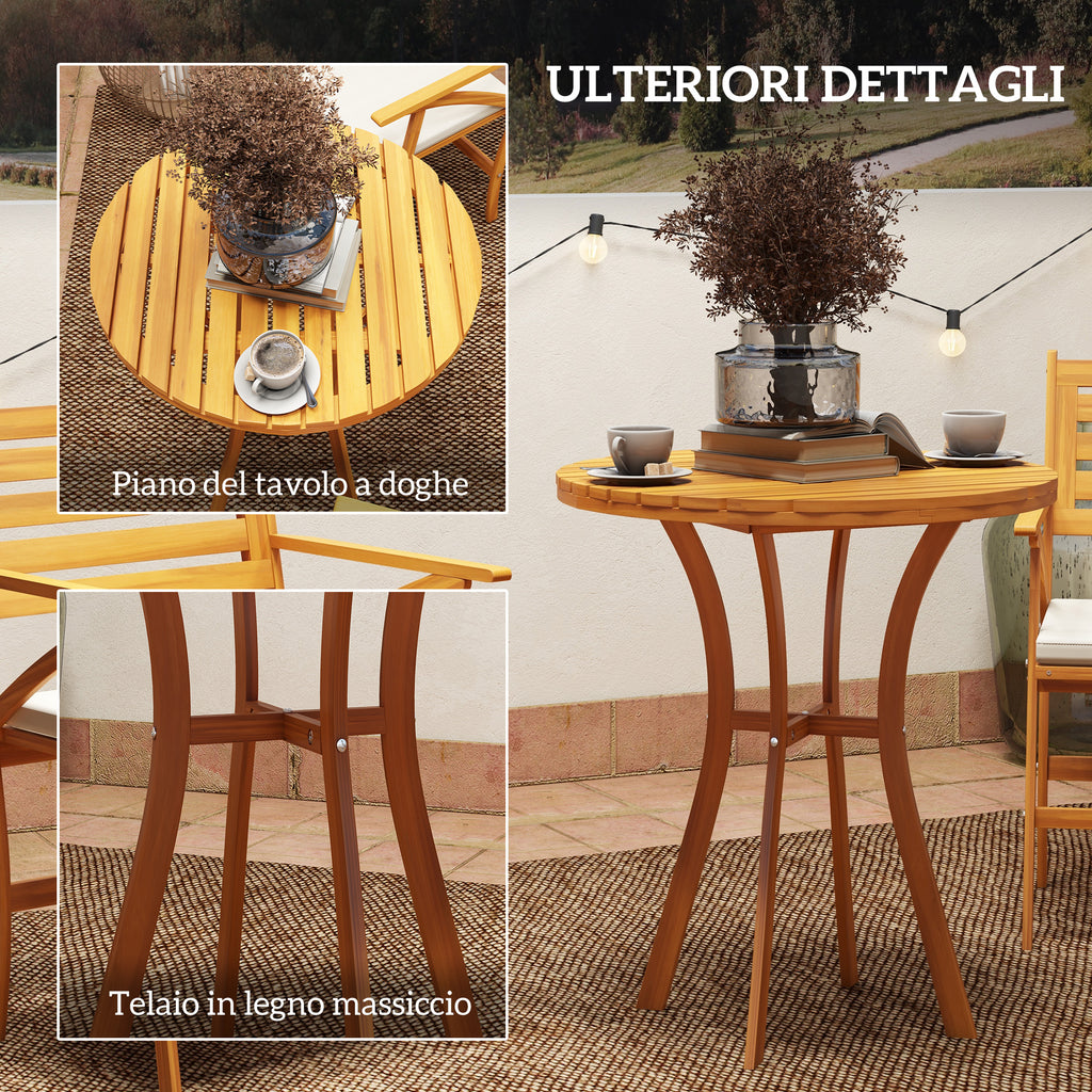 Set Tavolo e 2 Sedie con Cuscini da Giardino in Legno di Pino Naturale