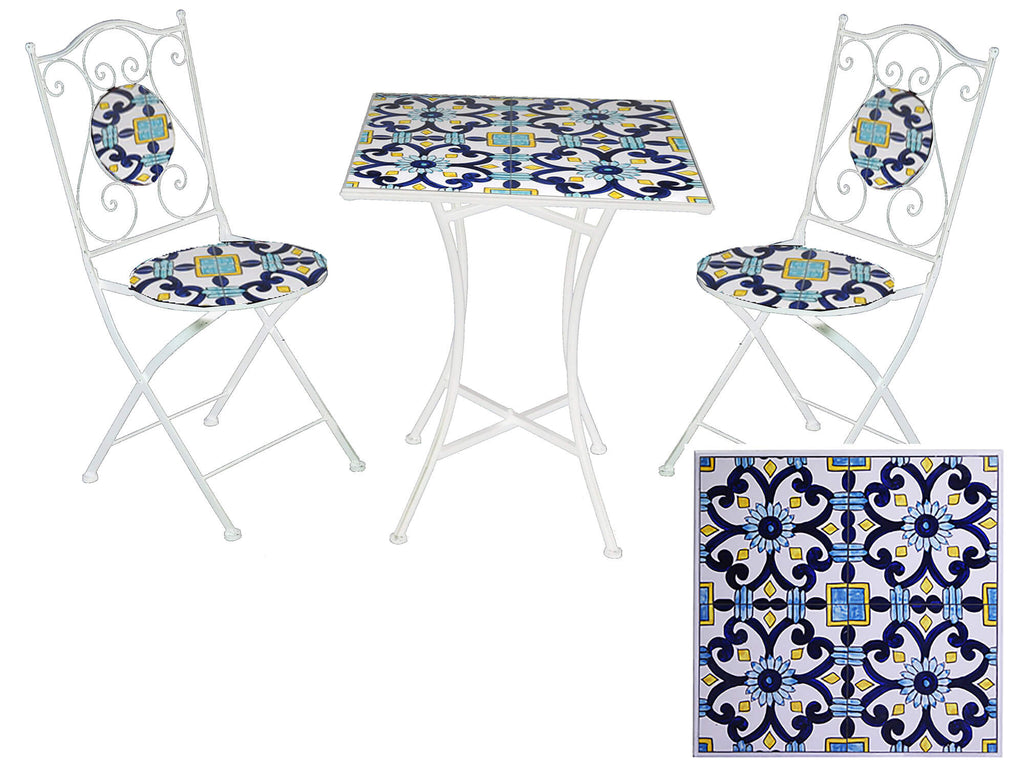 Ensemble table et 2 chaises de jardin avec mosaïque en métal Sorrento