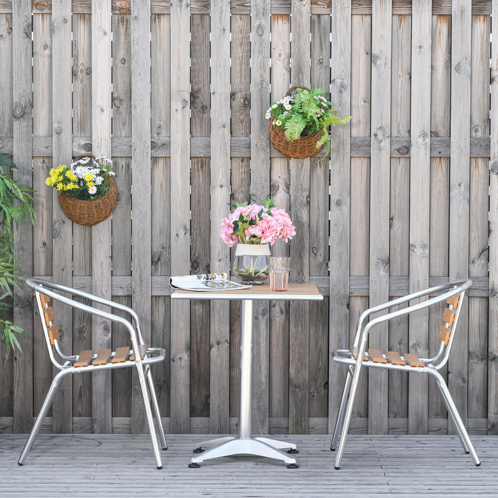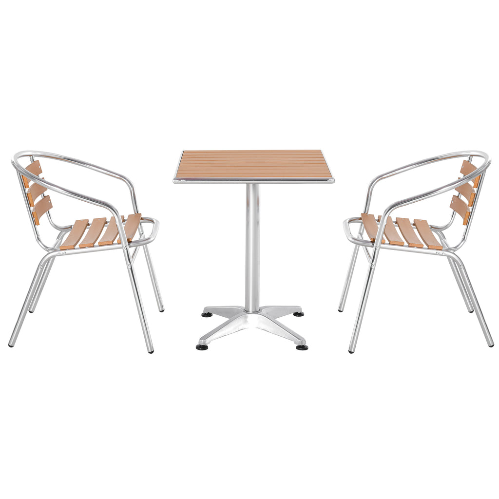 Ensemble table et 2 chaises de jardin en aluminium effet bois