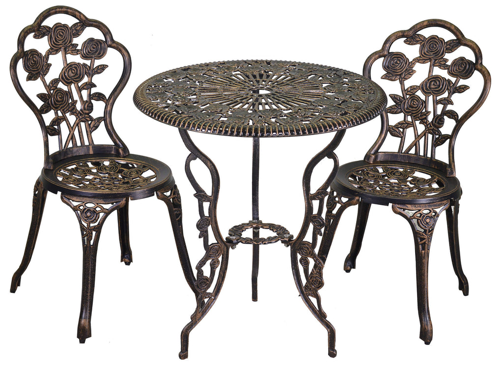 Ensemble de Table et 2 Chaises de Jardin en Aluminium Bronze Vérone