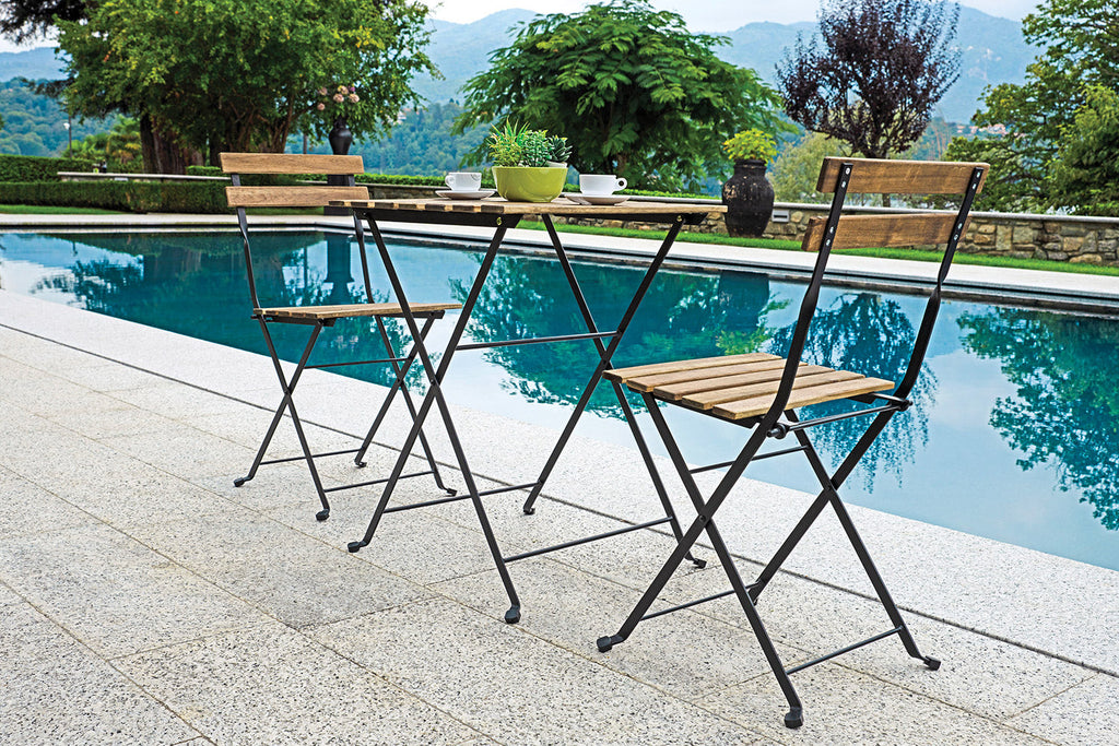 Set Tavolo e 2 Sedie da Giardino Pieghevoli Bistrò in Ferro e Legno di Acacia