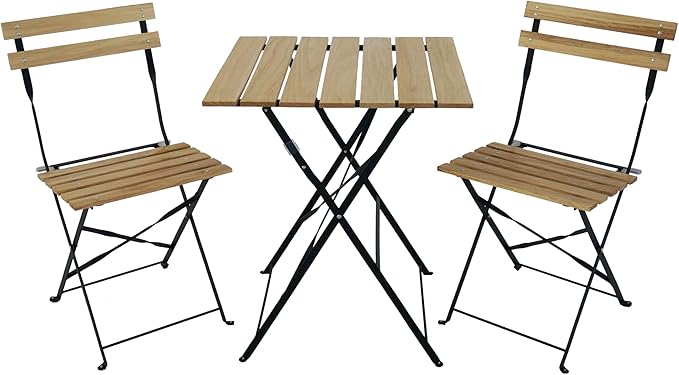 Set da giardino con tavolo e sedie pieghevoli in legno e metallo nero. Perfetto per arredare il tuo spazio esterno con stile e praticità, questo set include un tavolo e due sedie in legno resistente, completamente pieghevoli per facilitarne lo stoccaggio e il trasporto. La struttura in metallo verniciato a polvere garantisce durabilità e un design elegante, ideale per il giardino, la terrazza o il balcone. Ideale per momenti di relax all’aperto, il set Coco combina funzionalità e stile, rendendo il tuo spazio esterno accogliente e pratico. Scopri il comfort e la praticità del set da giardino Coco!