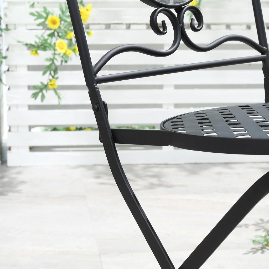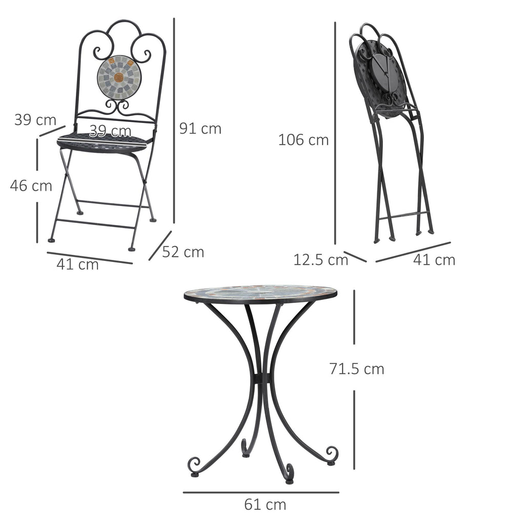 Ensemble table et 2 chaises de jardin pliantes mosaïque grise