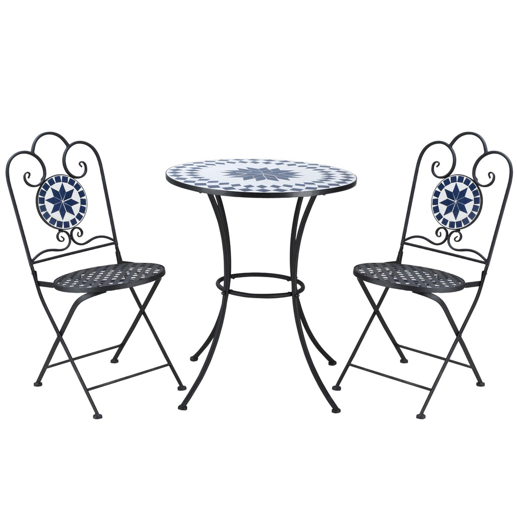 Ensemble table et 2 chaises de jardin pliantes avec mosaïque en métal