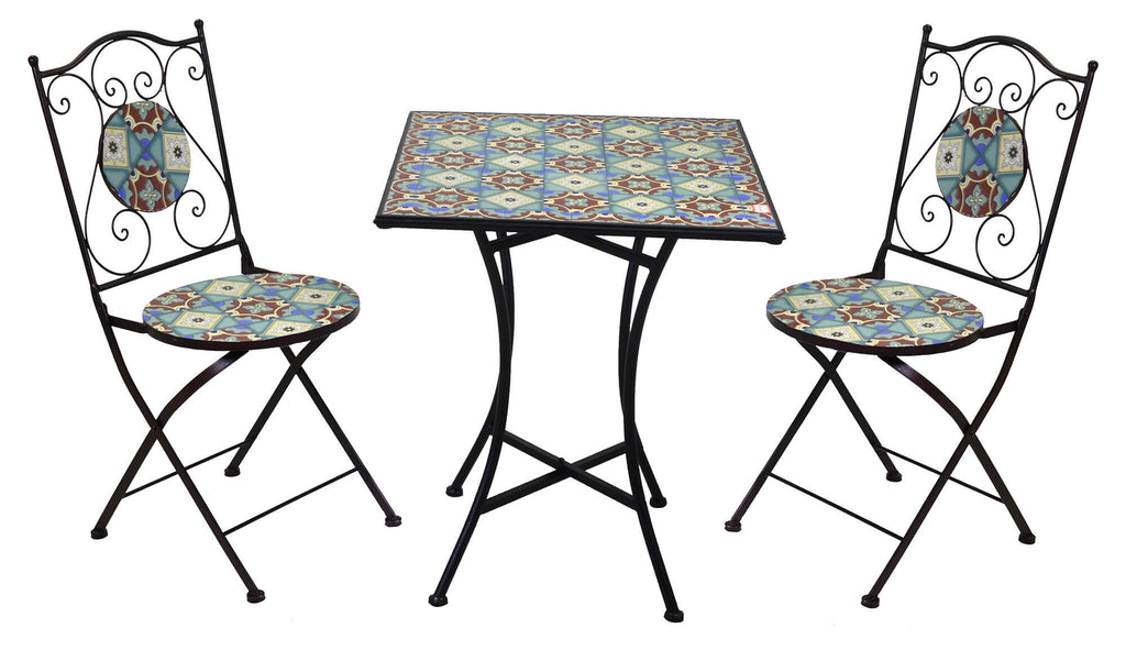 Ensemble table et 2 chaises de jardin pliantes avec mosaïque en métal Messina