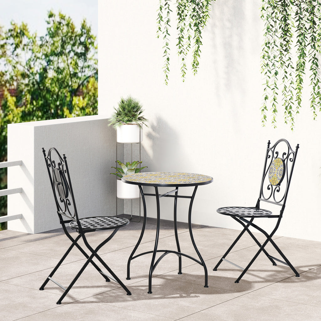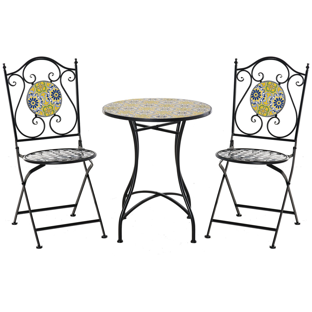 Table de jardin en métal et 2 chaises pliantes avec mosaïque colorée