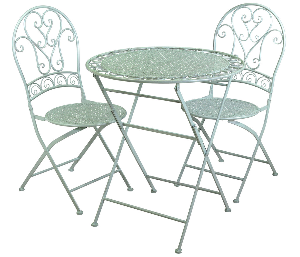 Ensemble de table et 2 chaises de jardin pliantes en métal vert Ragusa