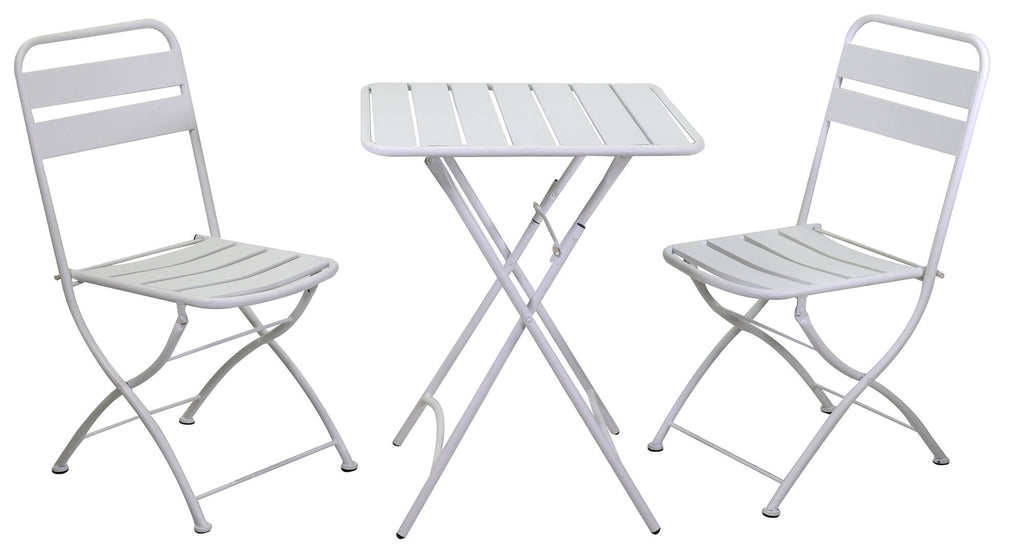 Ensemble de table et 2 chaises de jardin pliantes en métal blanc Rovigo