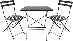Set da giardino con tavolo quadrato e sedie pieghevoli in metallo verniciato antracite. Questo pratico e elegante set include un tavolo 60x60x71 cm e due sedie, tutte completamente pieghevoli per un facile stoccaggio e trasporto. La struttura in metallo verniciato a polvere di colore antracite garantisce resistenza e stile, perfetto per il giardino, la terrazza o il balcone. Ideale per momenti di relax all’aperto, il set Koby combina funzionalità e design moderno, rendendo il tuo spazio esterno accogliente e pratico. Scopri il comfort e la praticità del set da giardino Koby!