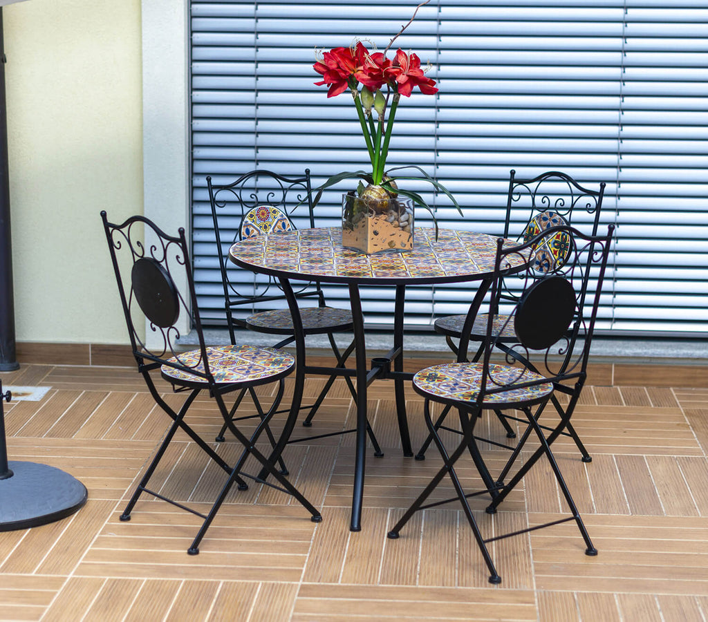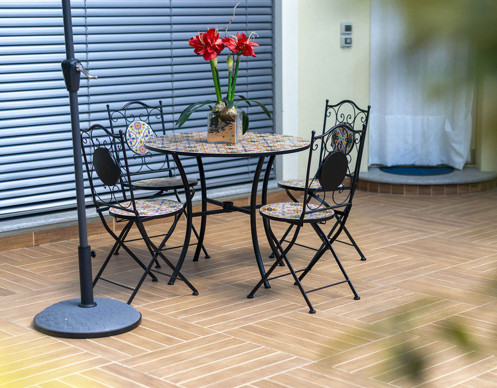 Ensemble de table et 4 chaises de jardin avec mosaïque en métal Trapani