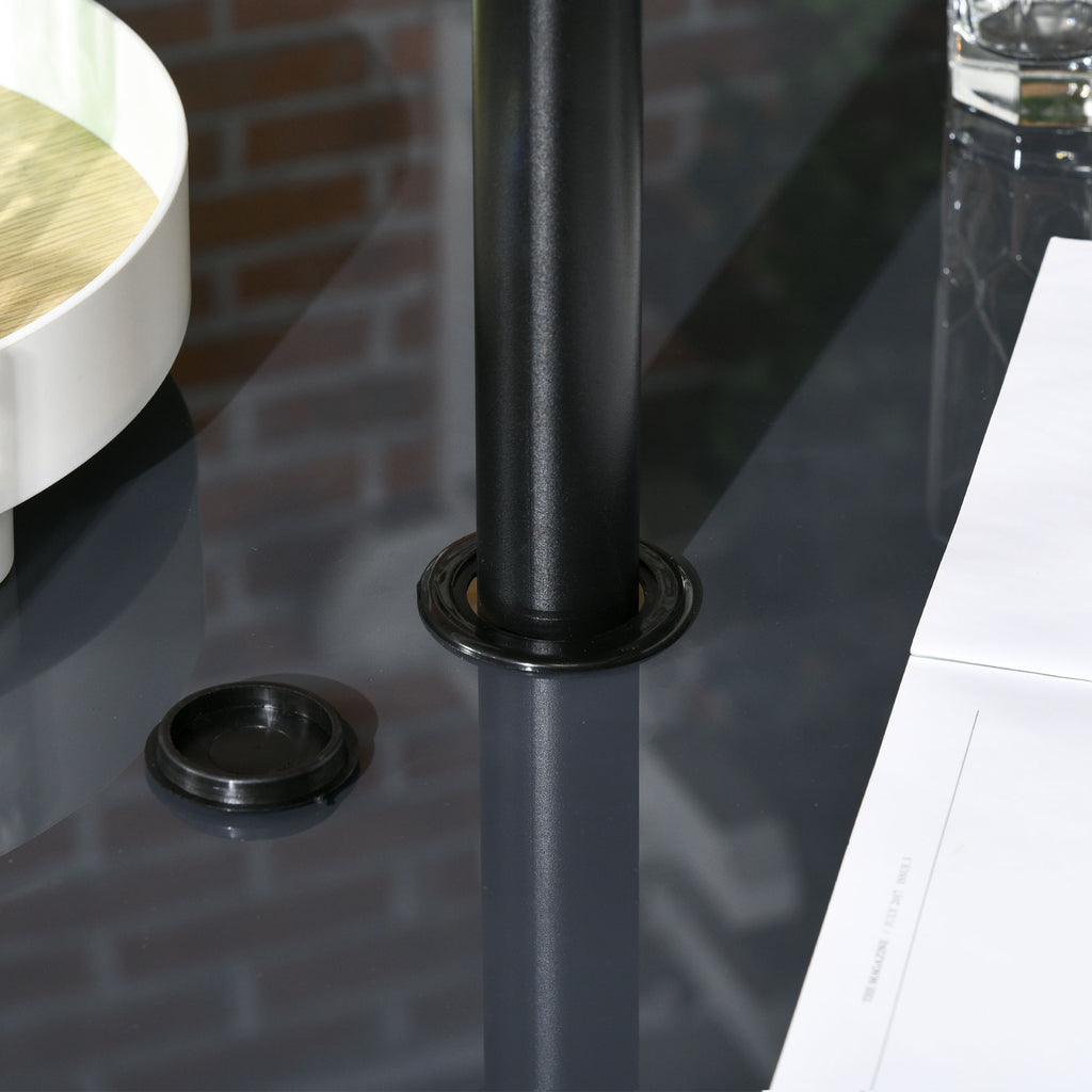 - Robusta struttura in acciaio con piano del tavolo da giardino in vetro temperato