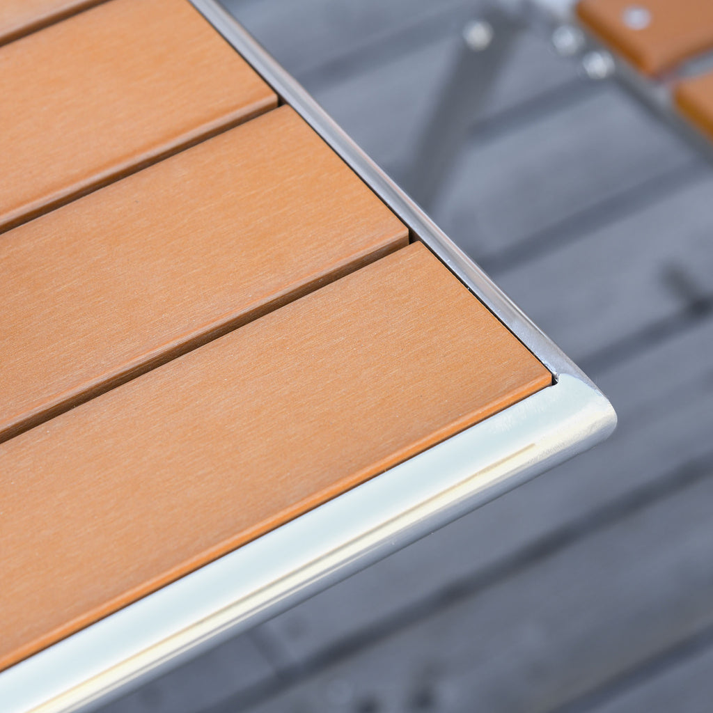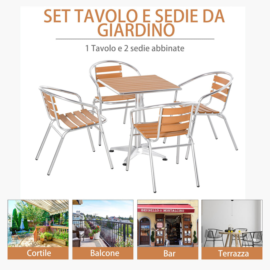 - DESIGN ÉLÉGANT: La table et les chaises de jardin ont un cadre de couleur argent avec des panneaux effet bois, avec des lignes minimalistes et élégantes pour s'adapter à tout type de mobilier d'extérieur.