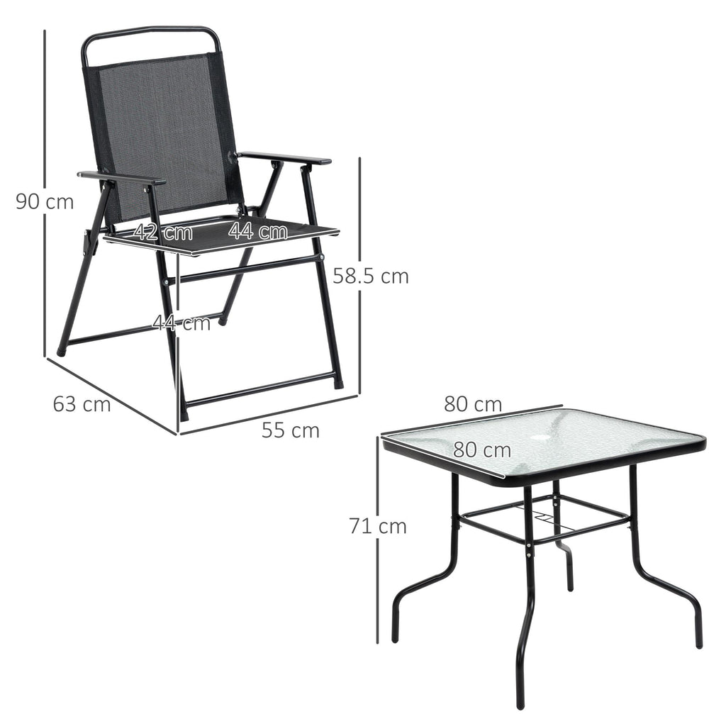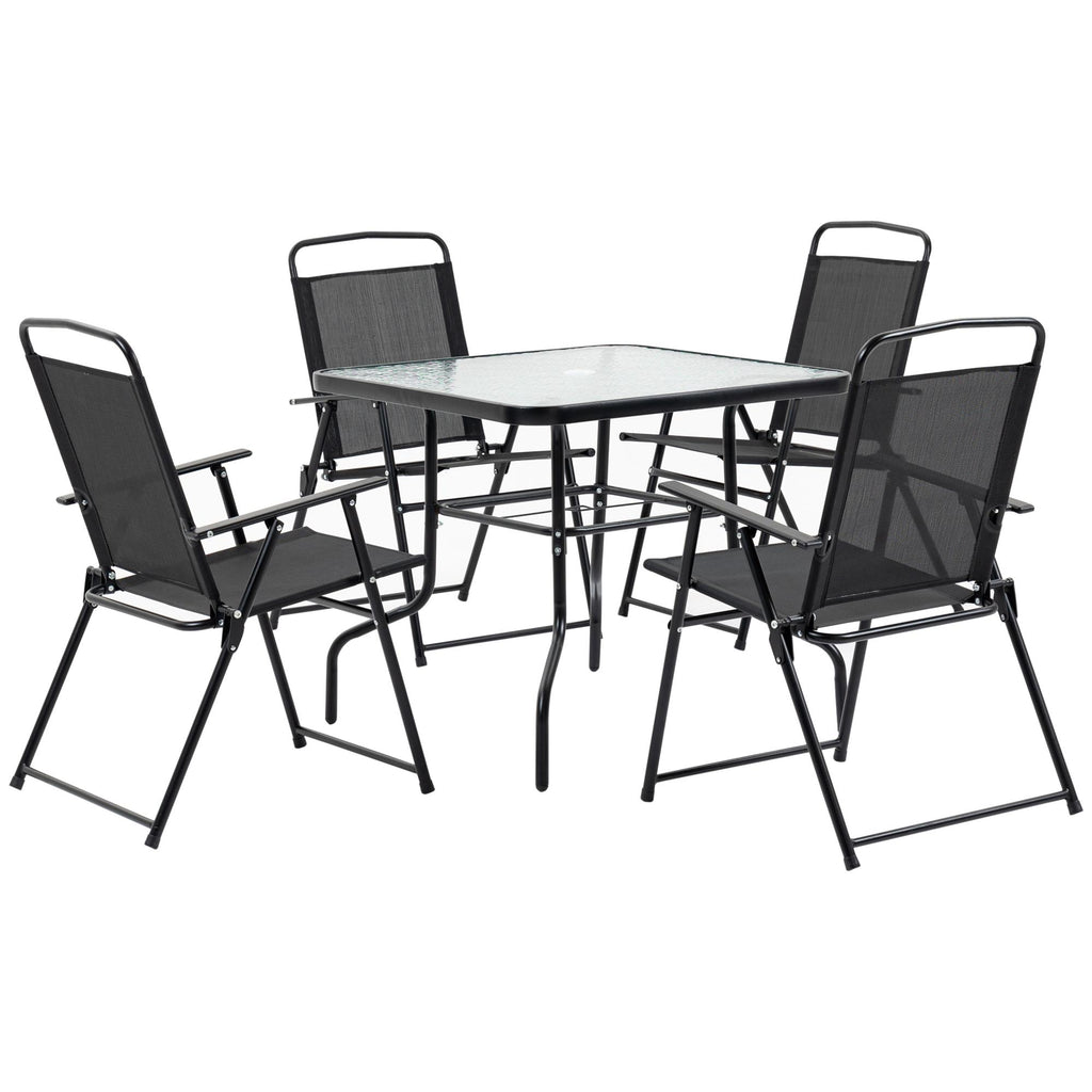 Ensemble de table et 4 chaises de jardin pliantes en métal et verre trempé noir