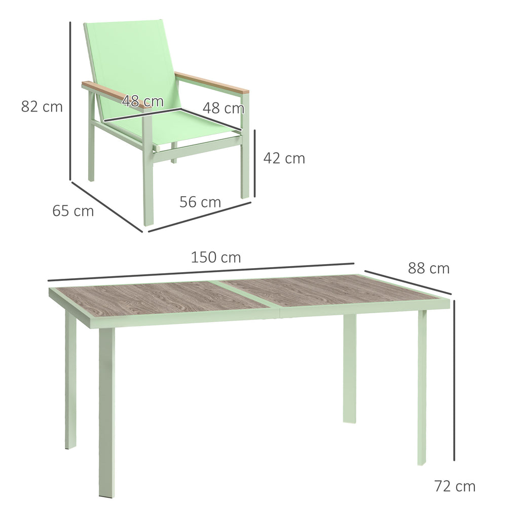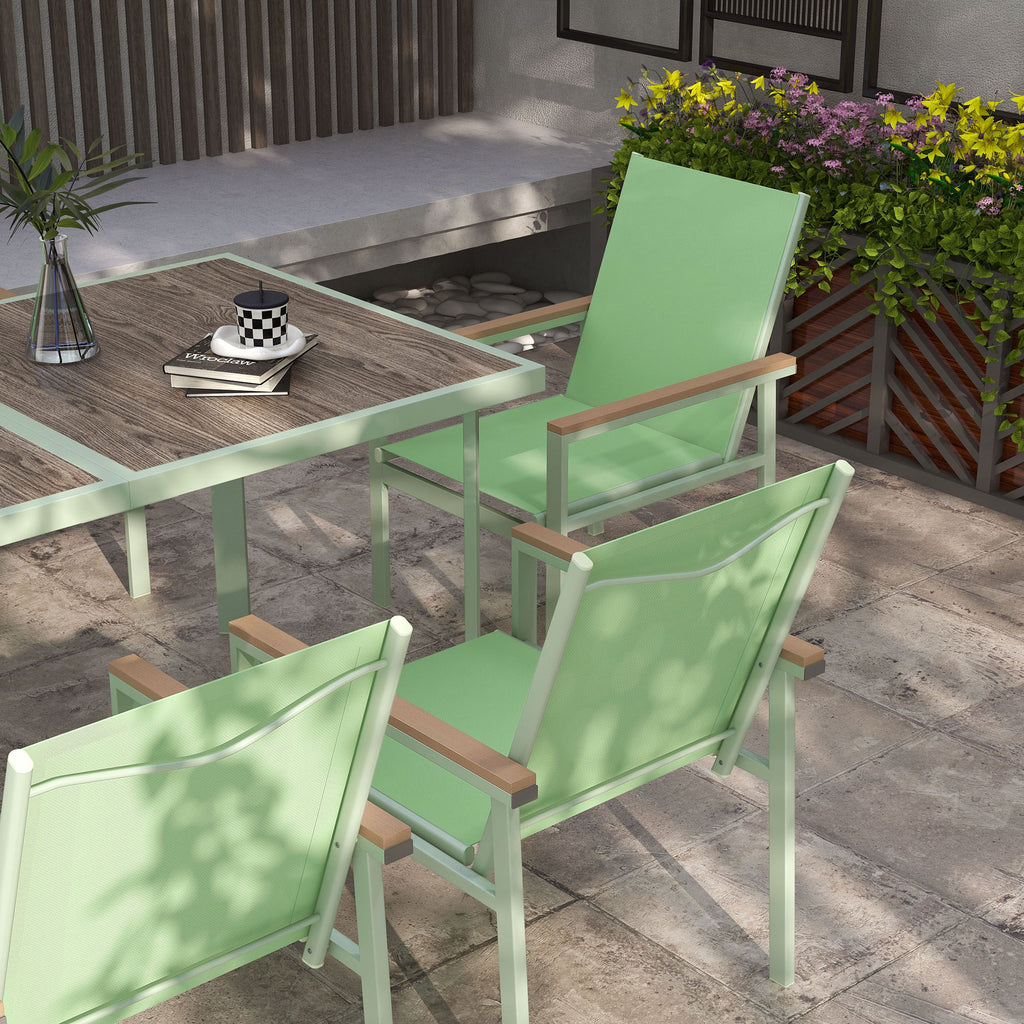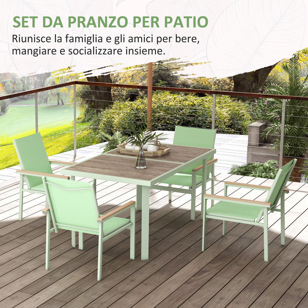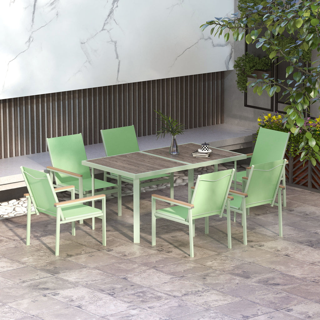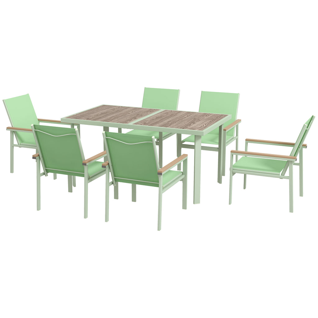 Set Tavolo e 6 Sedie con Braccioli da Giardino in Tessuto a Rete e Acciaio Verde