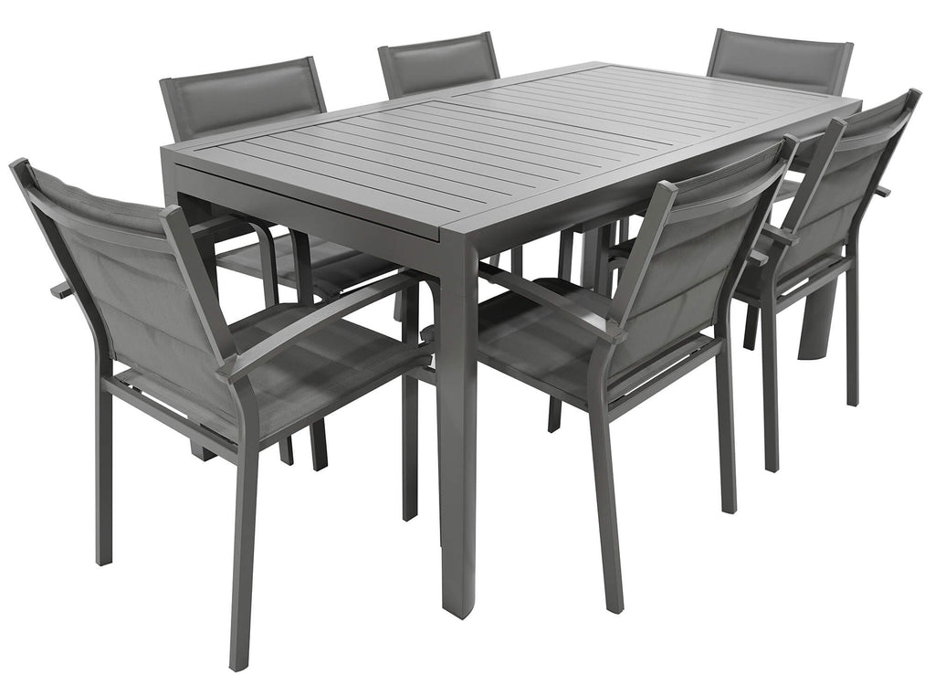 Avec un design simple et élégant, le Sugar Complete Set est idéal pour décorer votre jardin ou votre terrasse. L'ensemble comprend : une table extensible et 6 chaises. La table est en aluminium, les chaises sont faites d'une structure en aluminium résistante et de textilène rembourré. Grâce à la haute qualité des matériaux, il a une haute résistance aux intempéries et aux agents atmosphériques, garantissant une durée à long terme. Avec système de verrouillage pour une plus grande stabilité lorsque la table est allongée.