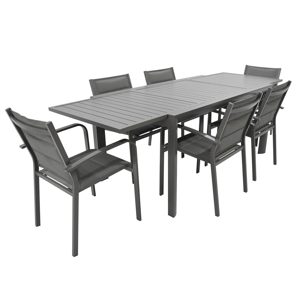 Ensemble table et 6 chaises de jardin en aluminium et textilène taupe
