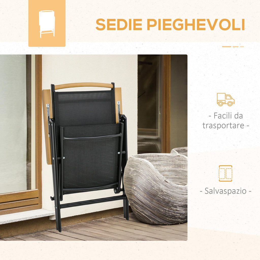 Ensemble Table et 6 Chaises de Jardin Pliantes en Textilline Noir