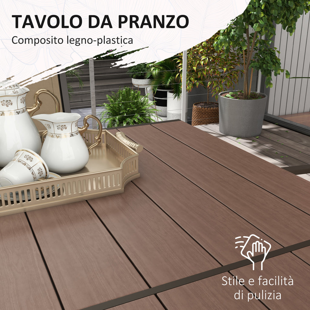 Set Tavolo e 6 Sedie Impilabili da Giardino in Plastica Kaki e Marrone