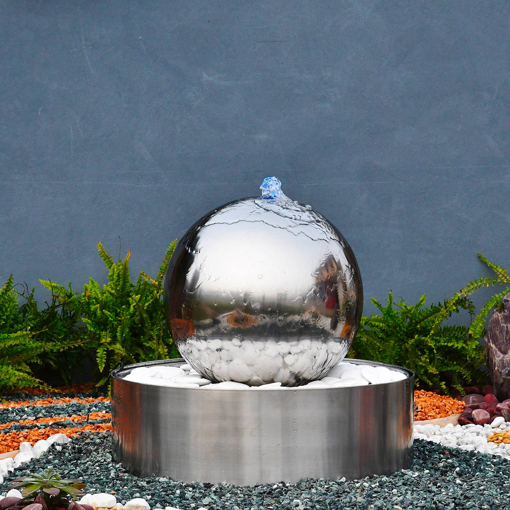 Sfera Cascata Artificiale da Giardino con LED Ø40 cm in Acciaio Inox con Pompa