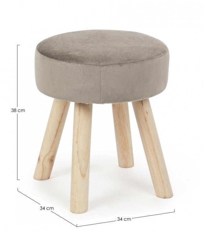 Lo sgabello presenta una struttura in legno di pino e MDF con verniciatura a base di nitrocellulosa per una finitura resistente e durevole. Il rivestimento è realizzato in poliestere con effetto velluto, aggiungendo comfort e un tocco di eleganza. Questo sgabello è pensato per essere un elemento decorativo e funzionale in vari ambienti della casa, offrendo una seduta comoda e uno stile raffinato.