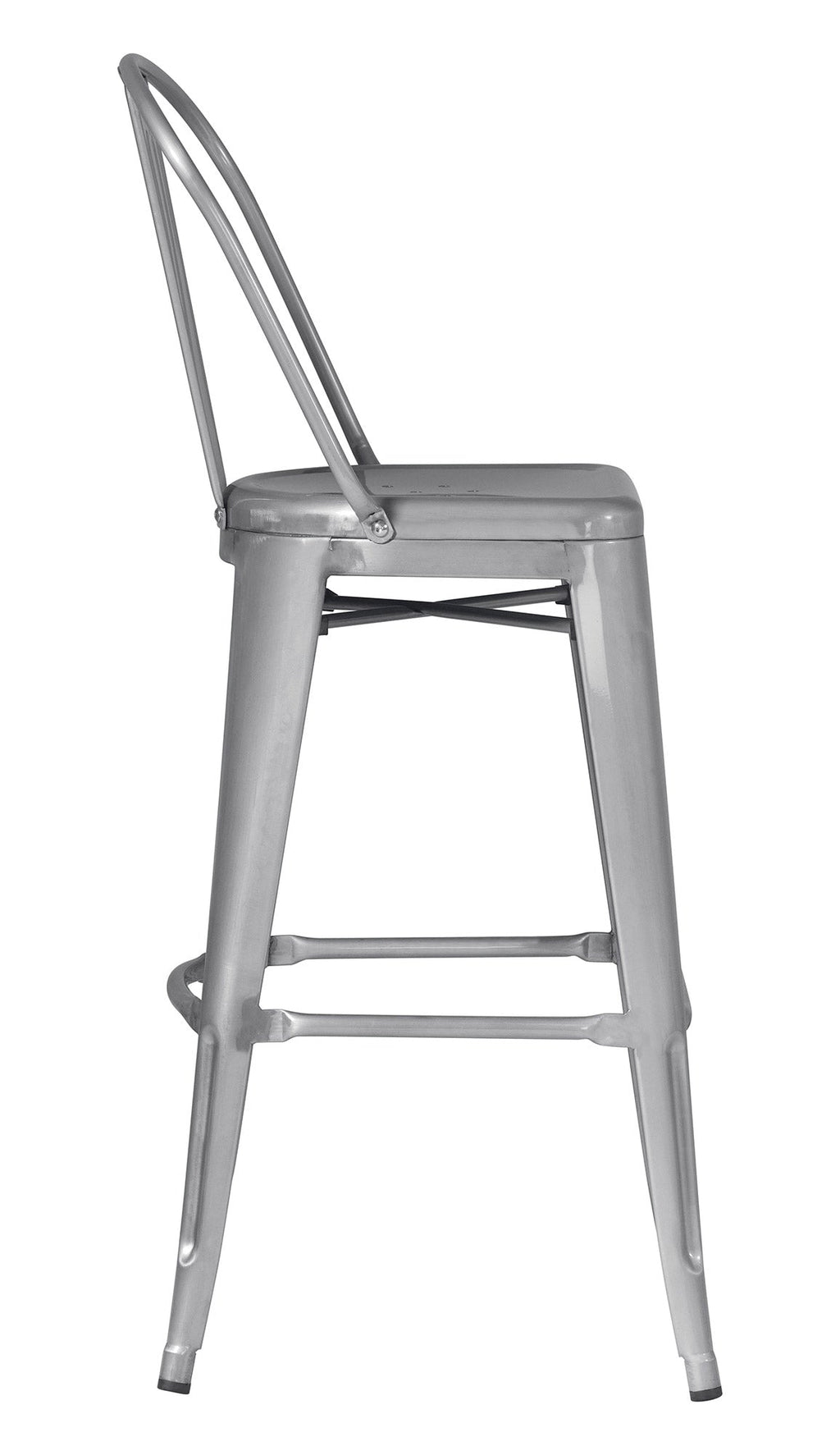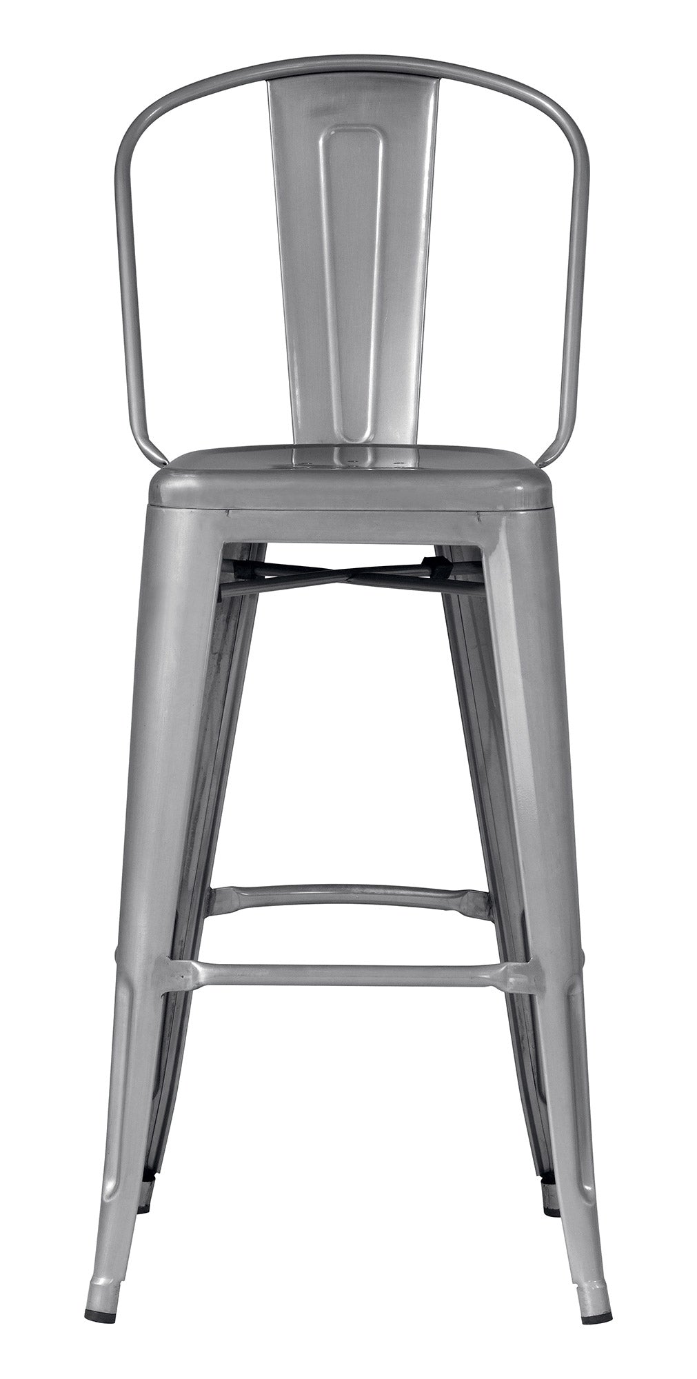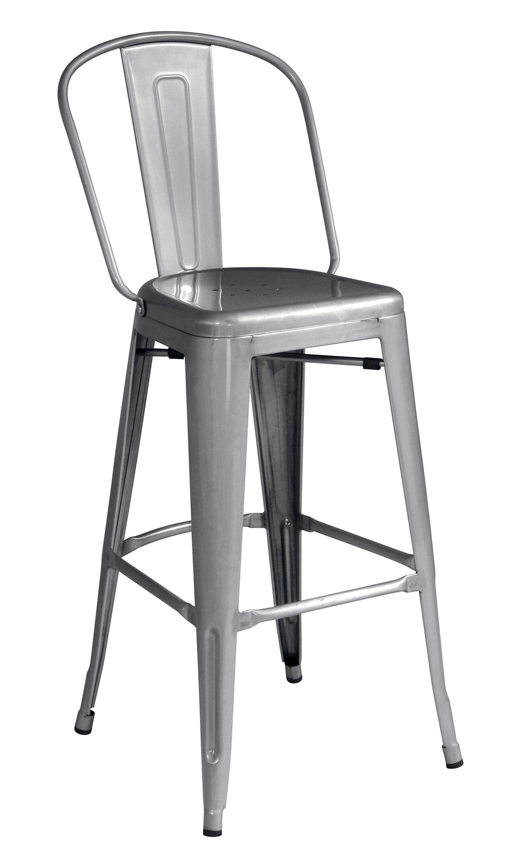 Tabouret Haut avec Dossier 49x52x114 cm en Tôle Galvanisée Argent