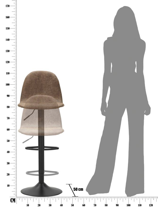 Tabouret Berlin 41x50x90-112 Hauteur d'assise 60x81 cm en Fer et Éponge et PU Marron et Gris