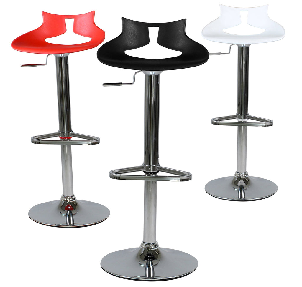 Tabouret moderne avec assise et dossier en polypropylène, base en acier réglable en hauteur avec repose-pieds très confortable.