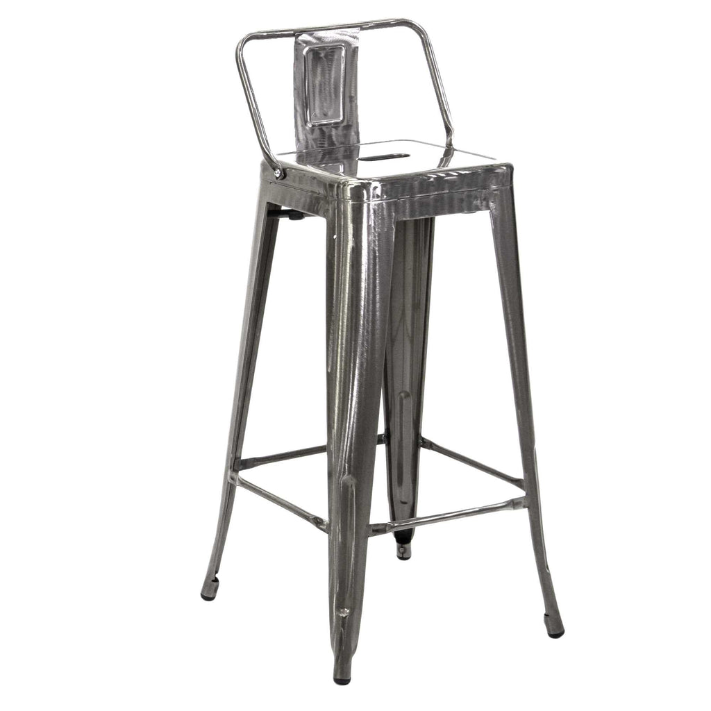 Tabouret New Bristol avec dossier 42x42xh77/94 cm en fer galvanisé avec assise en bois