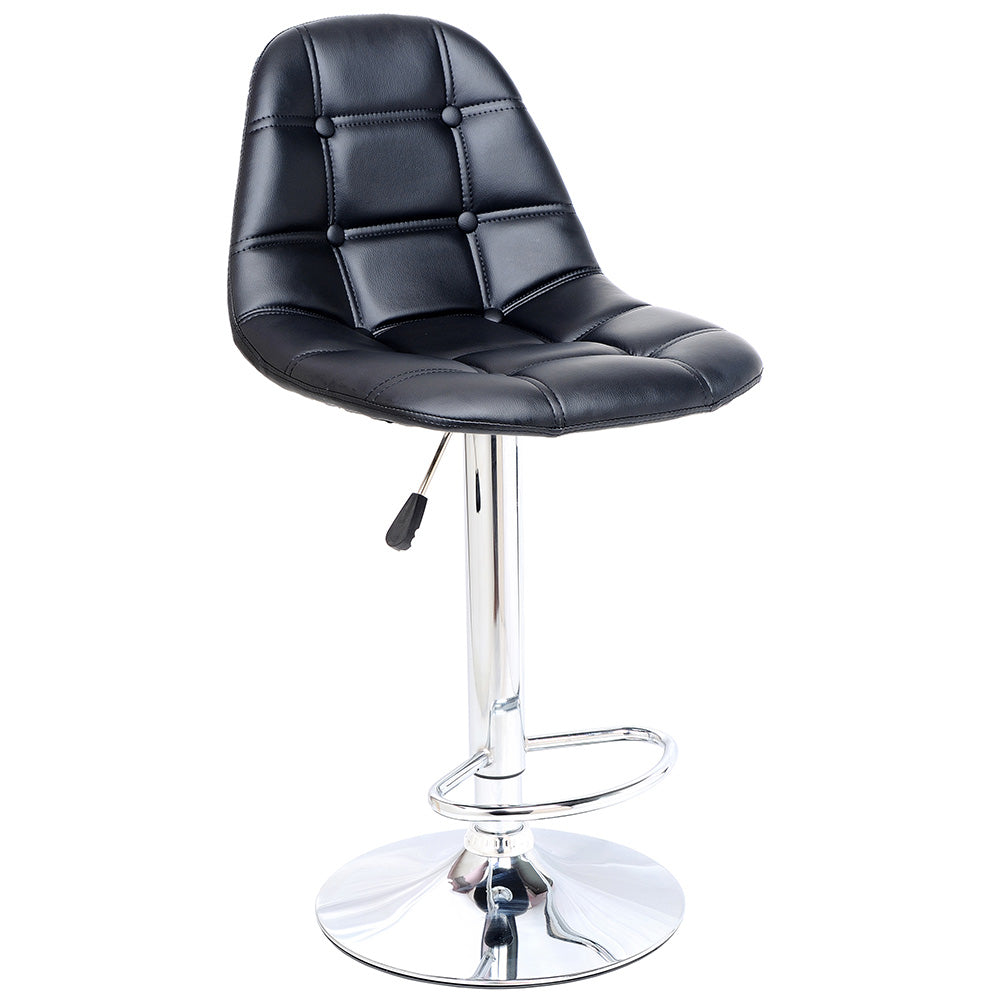 Tabouret Button avec assise pivotante et vérin à gaz en similicuir noir pour bar.