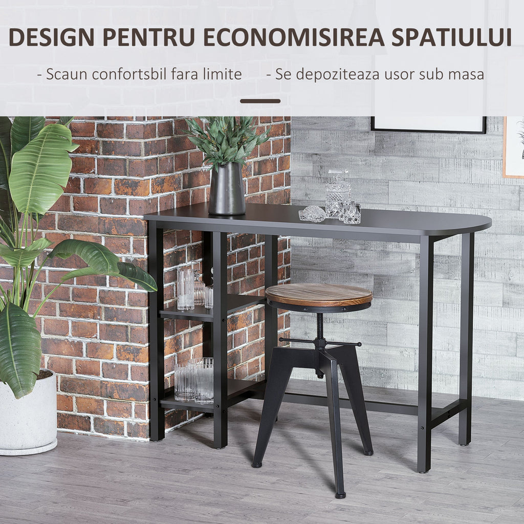 Tabouret de bar haut réglable en hauteur en métal et bois noir
