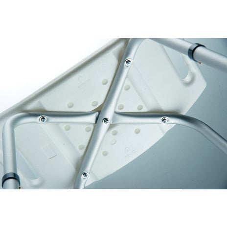 L'altezza della seduta è regolabile da 39 cm a 56 cm. La seduta in plastica dura è perforata per impedire all'acqua di stagnarsi sulla superficie e di conseguenza farla scivolare in basso.