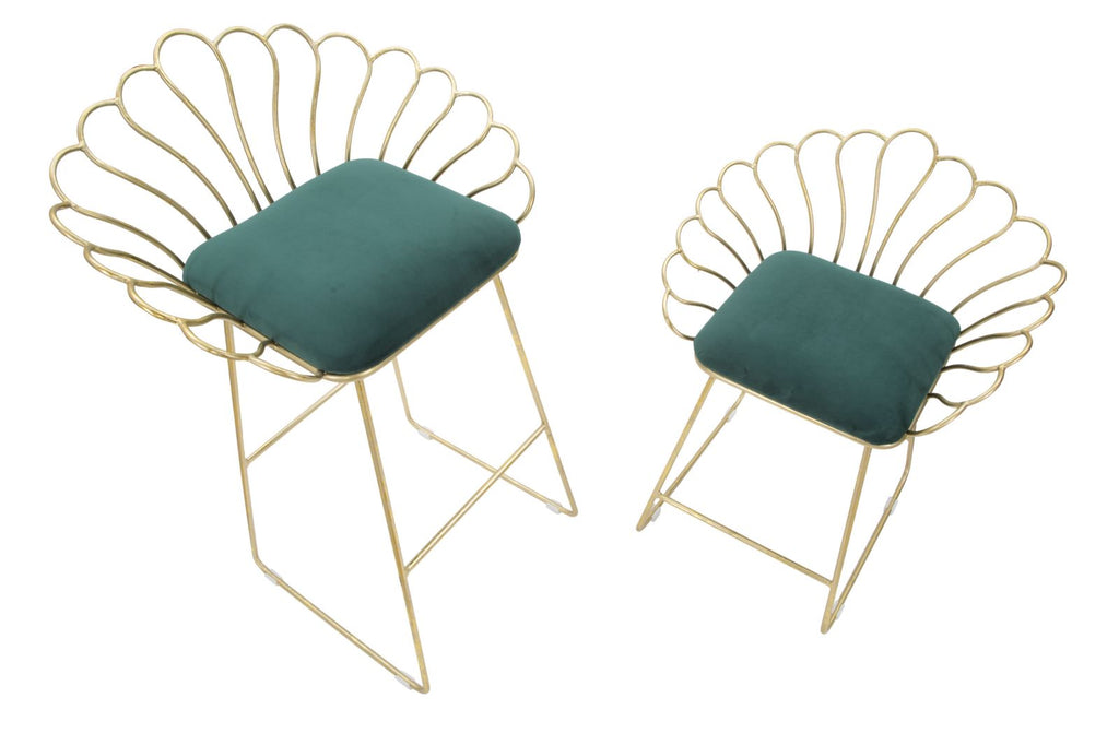 Paire de tabourets Glam Flower Pink 57x52x94-56x48x72,50 cm en fer, polyester et éponge verte et dorée
