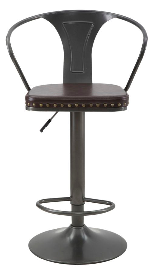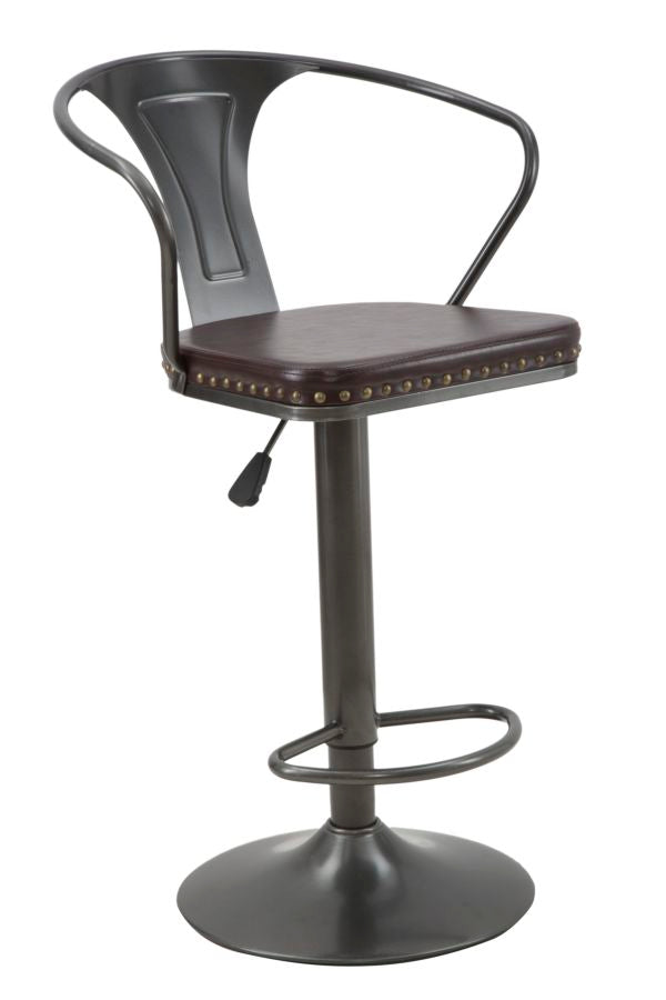 Tabouret rembourré Detroit 51x48x86-108 cm en fer et éponge et PU marron et gris