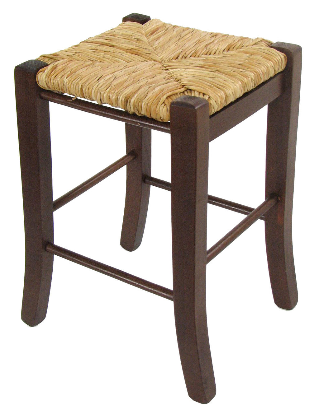 Tabouret en bois de hêtre avec assise carrée en toile de noyer