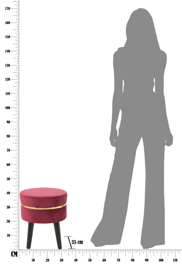 Tabouret Paris Bordeaux Ø35x40,5 cm Bois Éponge et Velours Synthétique Bordeaux et Doré et Noir