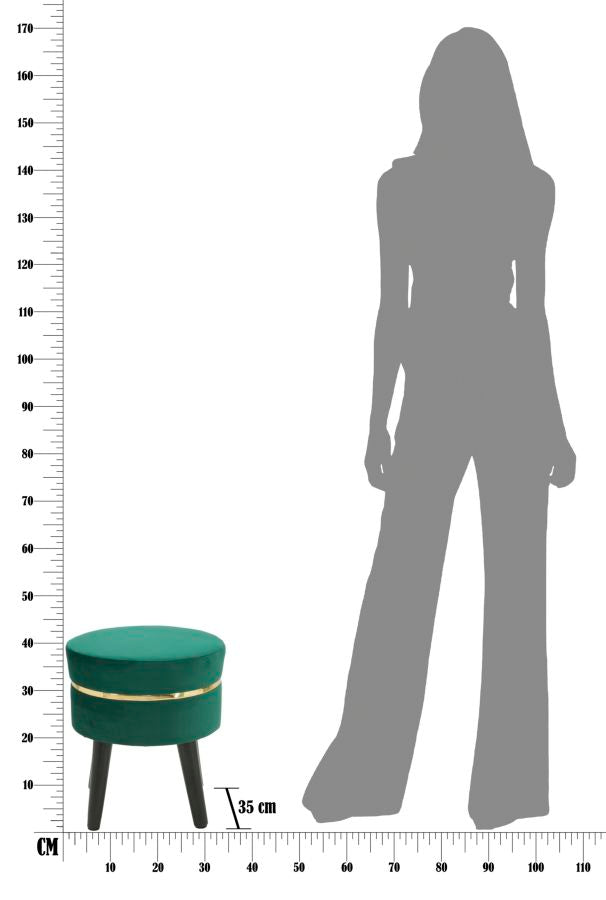 Tabouret Paris Vert Ø35x40,5 cm Bois Eponge et Velours Synthétique Vert et Doré et Noir