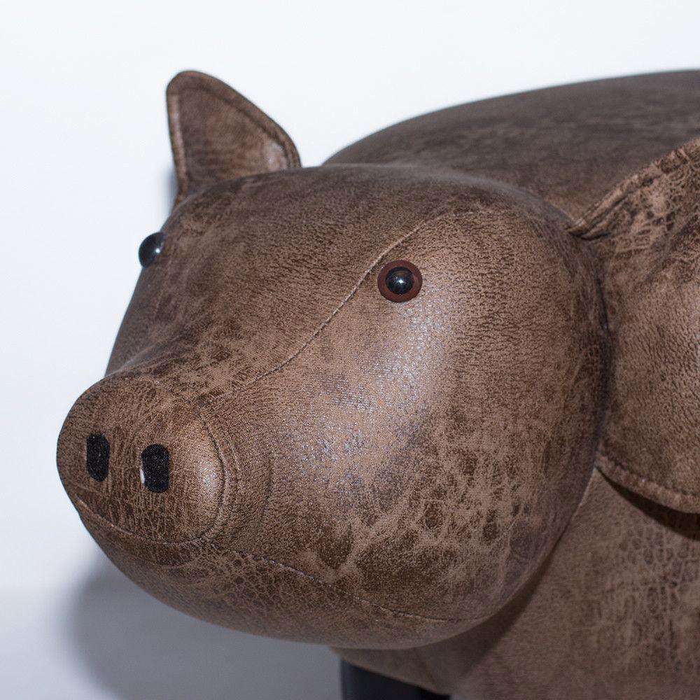Tabouret Pouf Repose-pieds pour Enfant 66x34x36 cm Cochon Marron
