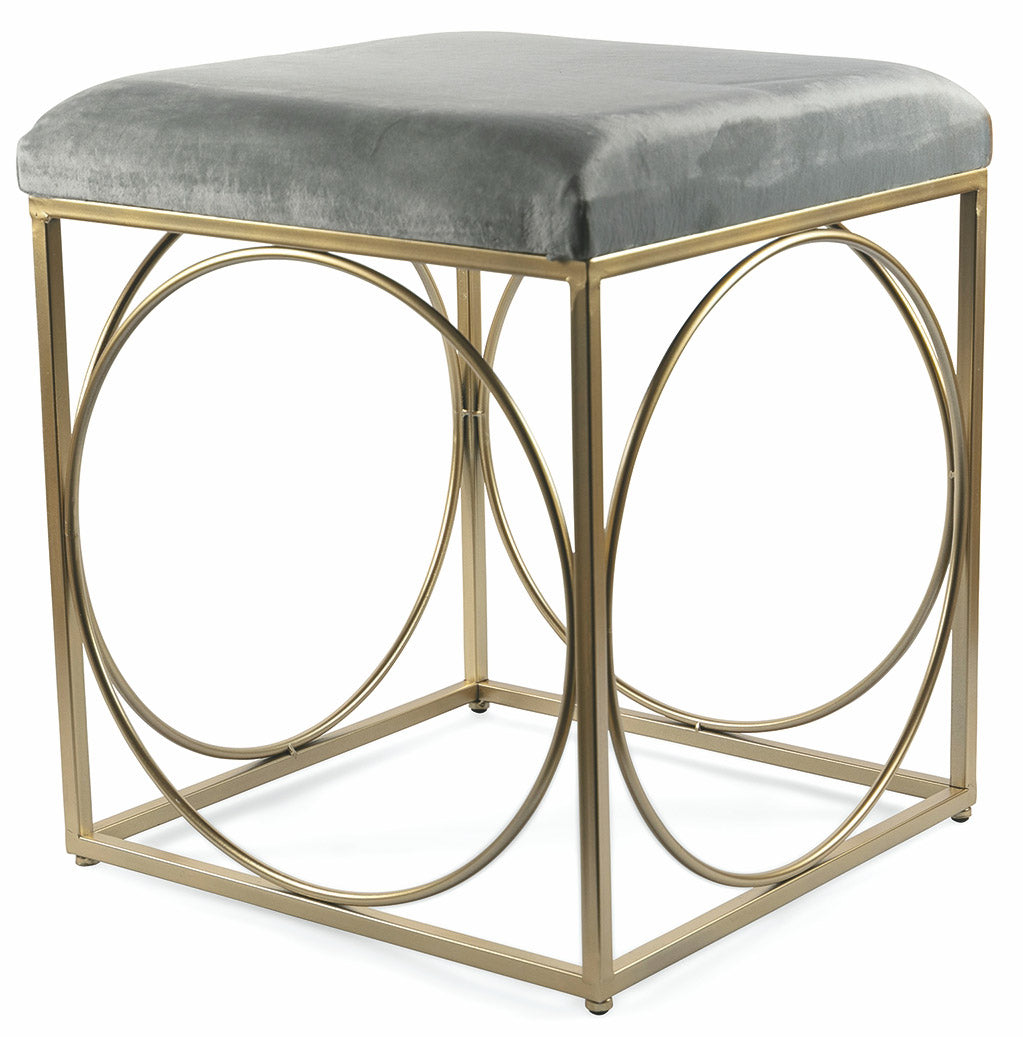 Tabouret Carré 40x40x46 cm en Fer et Velours Soriani Gris