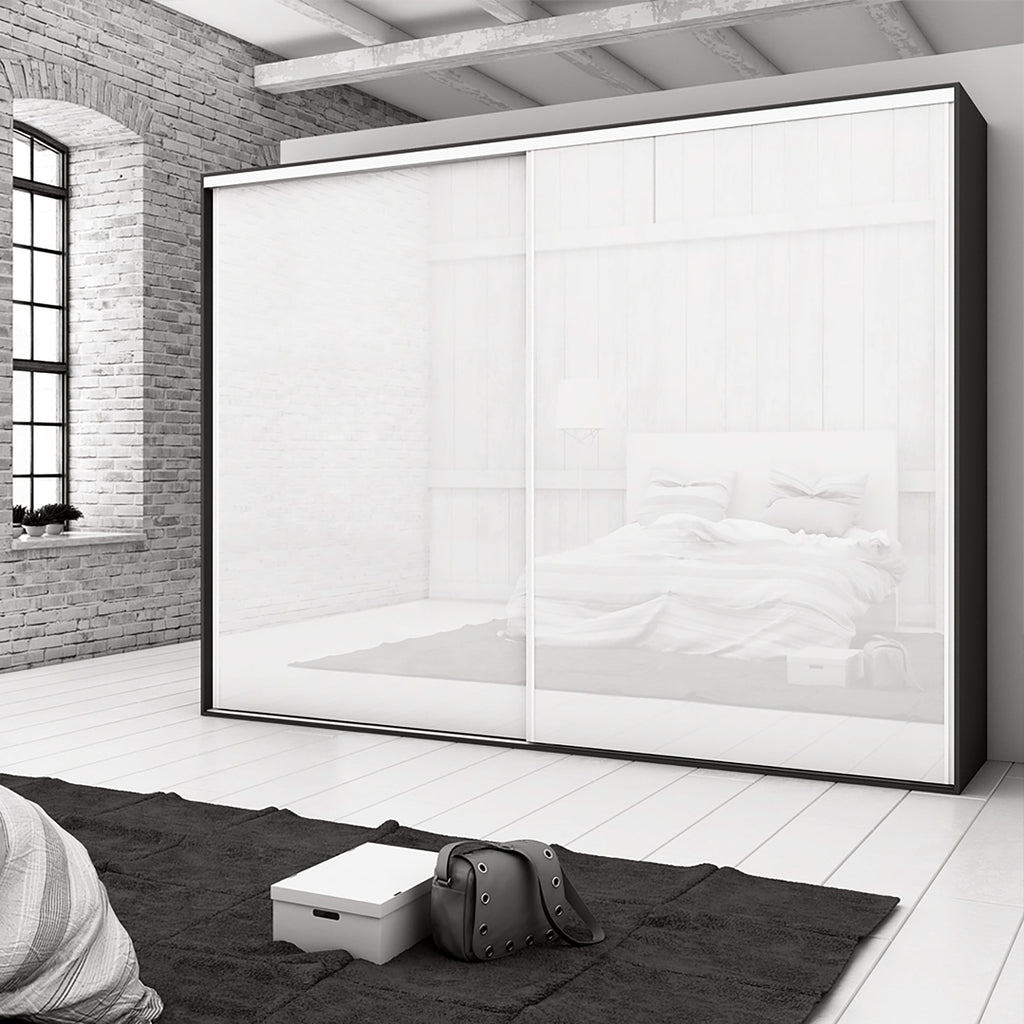 - Système coulissant pour créer une armoire avec deux portes coulissantes à enroulement inférieur.