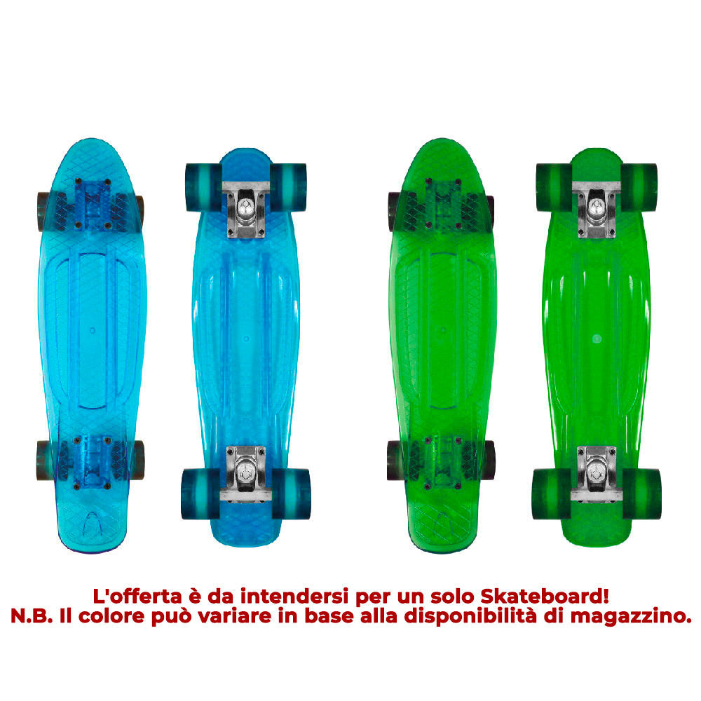 Lo skateboard Vitro è caratterizzato da una tavola trasparente di 57 cm realizzata in Policarbonato, che conferisce allo skate un aspetto moderno e accattivante. Le ruote da 60x45mm in PVC garantiscono una buona aderenza e durata nel tempo, mentre i cuscinetti ABEC7 assicurano una scorrevolezza fluida. L'asseruota in alluminio garantisce una maggiore stabilità e resistenza. Con una portata massima di 100 Kg, questo skateboard è adatto sia per bambini che per adulti. La disponibilità di colori blu e verde permette di scegliere la variante che meglio si adatta al proprio stile e preferenze. Grazie al suo eccellente controllo, lo skateboard Vitro permette di eseguire manovre con facilità ed è adatto sia per principianti che per skater più esperti.