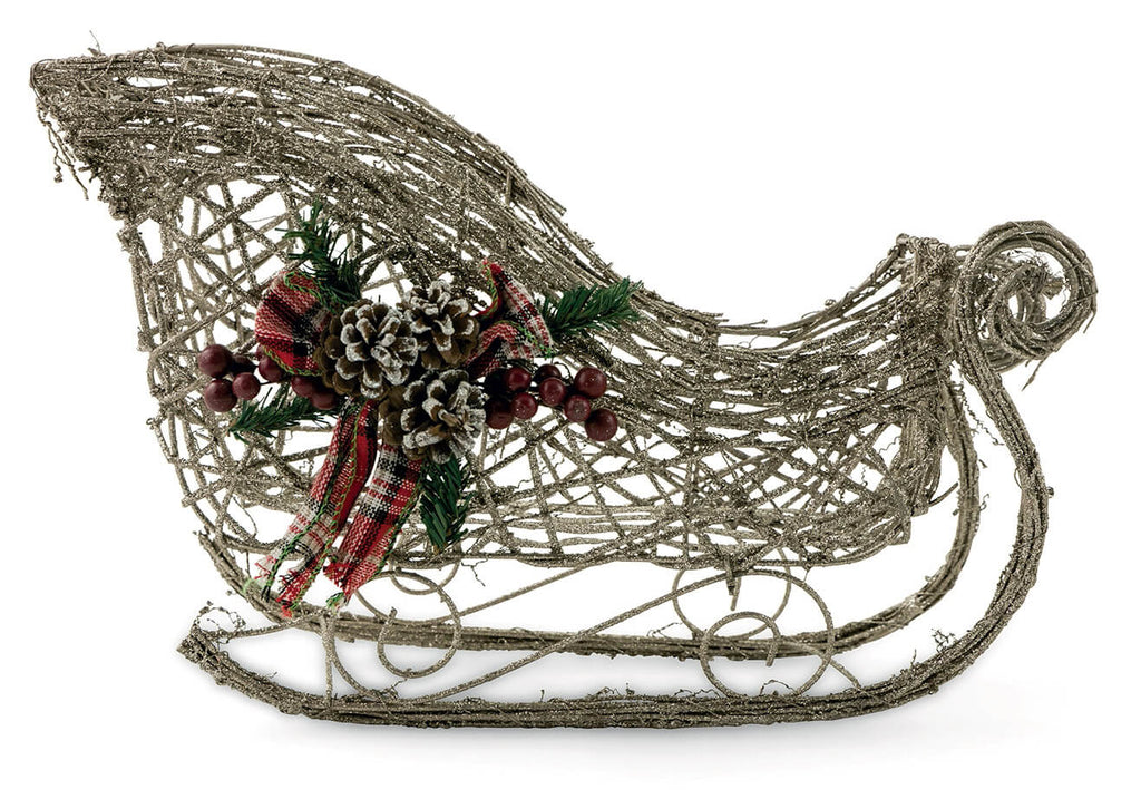 Traîneau du Père Noël 47x18x30 cm en Rotin Soriani Doré