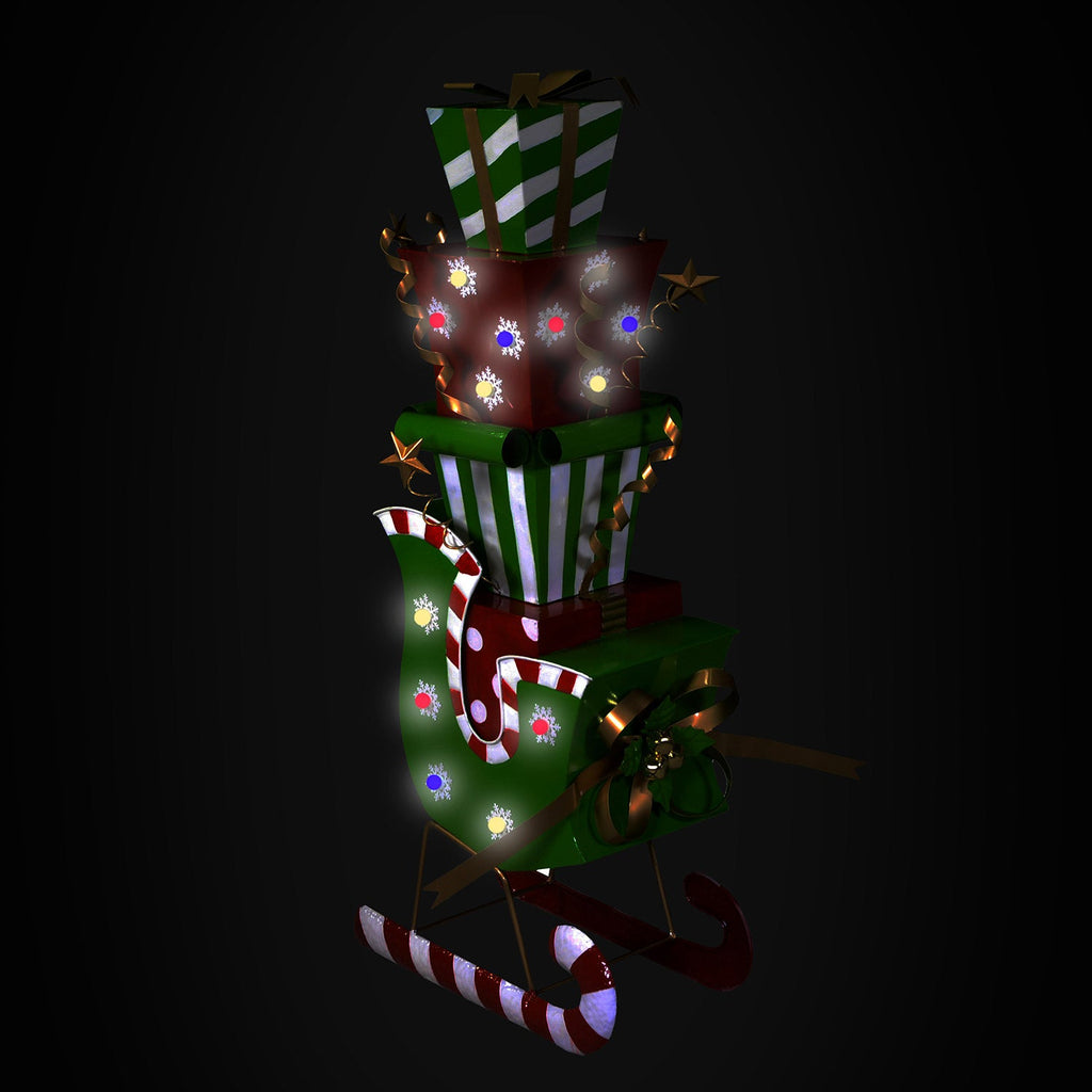 - Traîneau en métal avec des cadeaux verts 26x51xh115 cm
