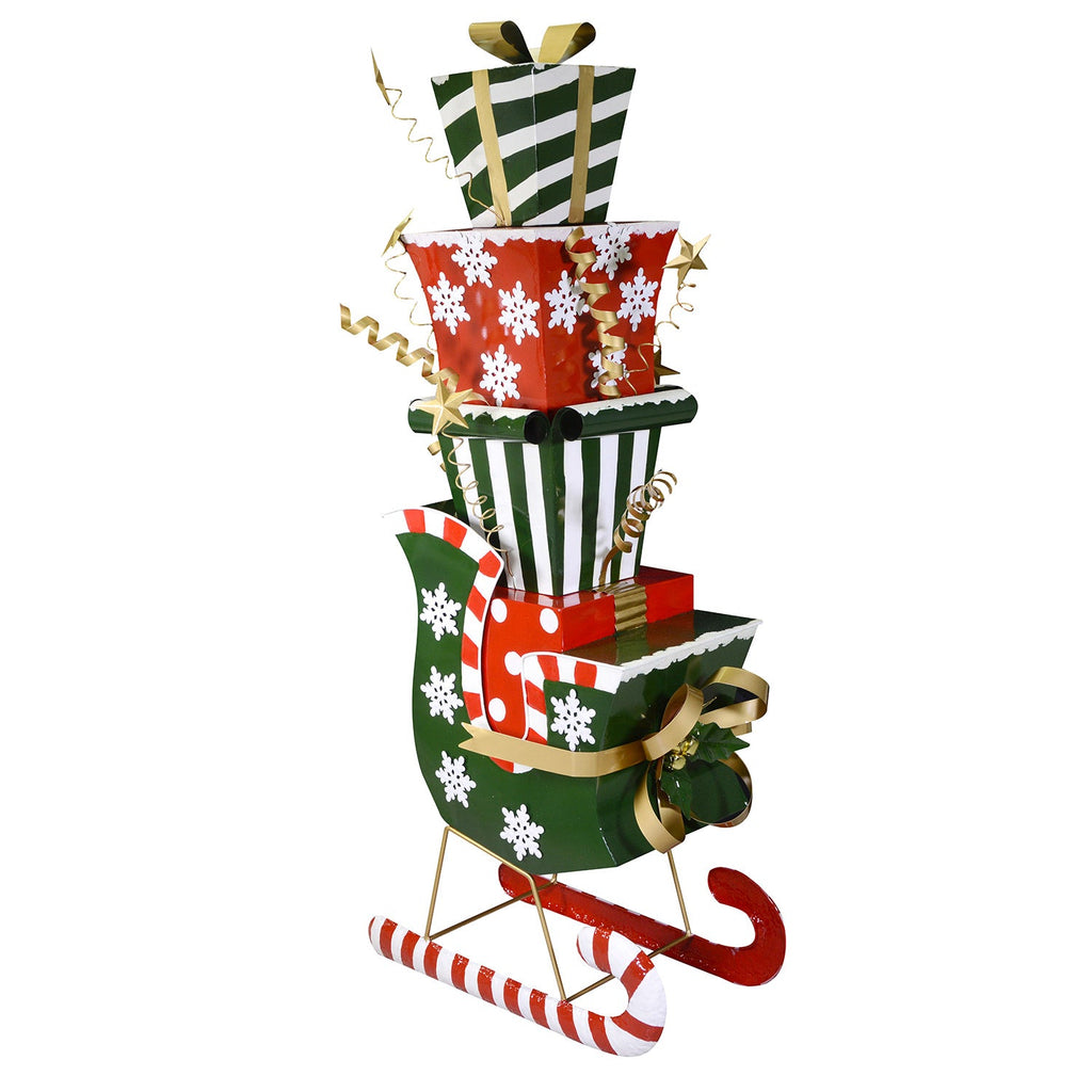 - Traîneau en métal avec des cadeaux vert foncé 64x34xh150 cm