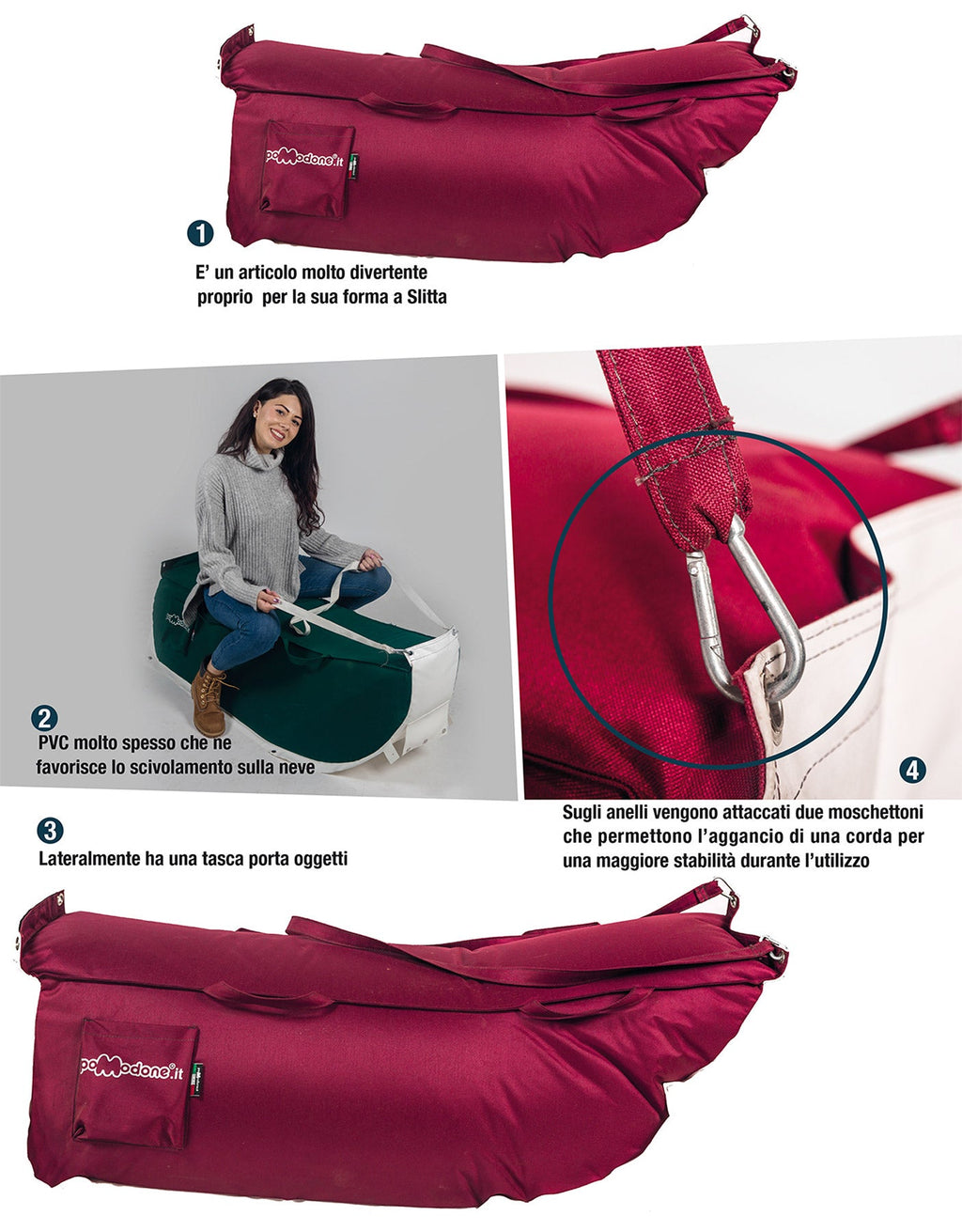 Vous verrez les touristes de vos installations hivernales glisser sans soucis sur les traîneaux à neige Pomodone, profiter pleinement de leurs vacances à la montagne et vous considérer comme une installation ludique 5 étoiles.