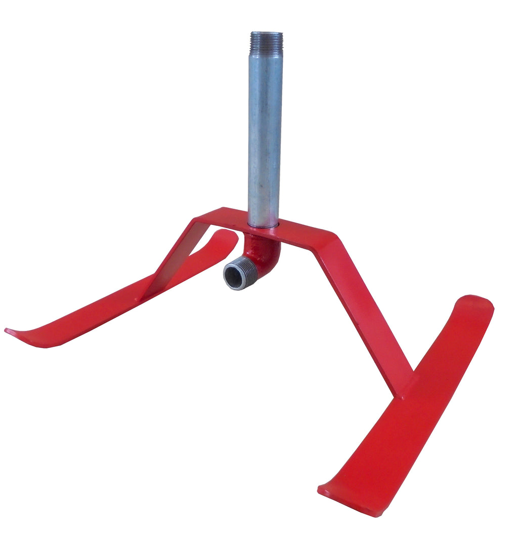 Glissière porte-arroseur robuste, équipée de filetages 3/4"M pour une utilisation avec des arroseurs professionnels ; la largeur de la base assure la stabilité, et les deux patins permettent de le déplacer sur le sol, en tirant le tuyau d'alimentation, sans interrompre l'irrigation. acier : base peinte avec de la poudre de polyester non toxique, tube vertical galvanisé. Le paquet contient du ruban PTFE pour sceller les filetages.
