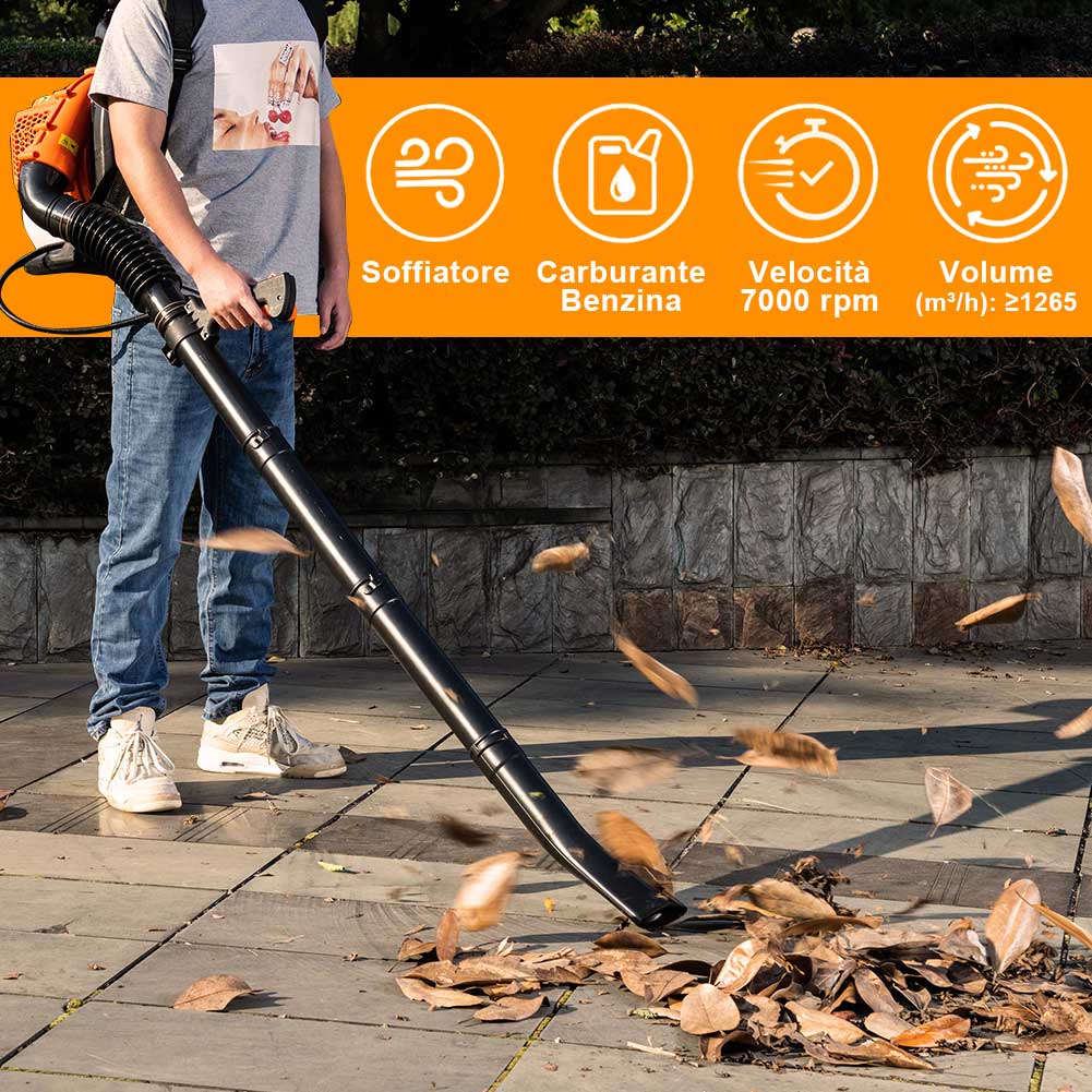 Soffiatore Foglie a Scoppio 52cc 1,5Kw 2 Tempi a Zaino Spalla Motore a Benzina