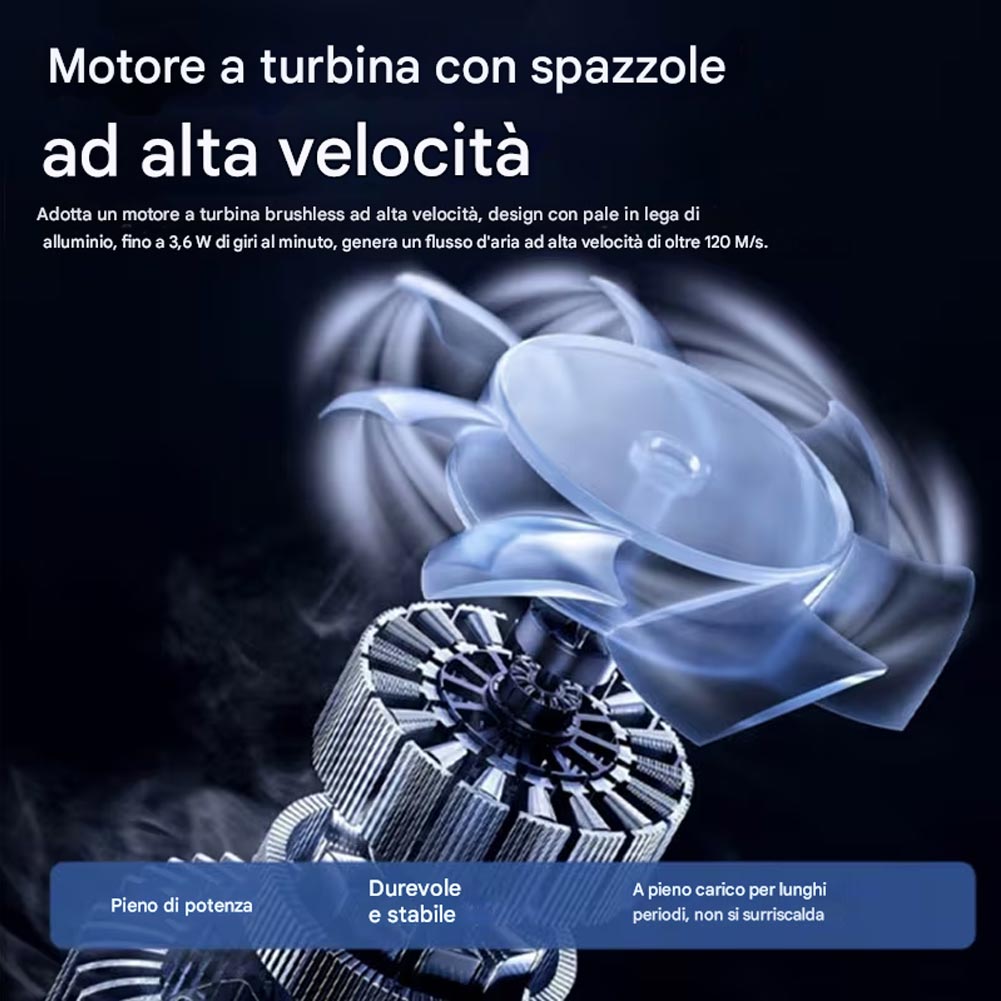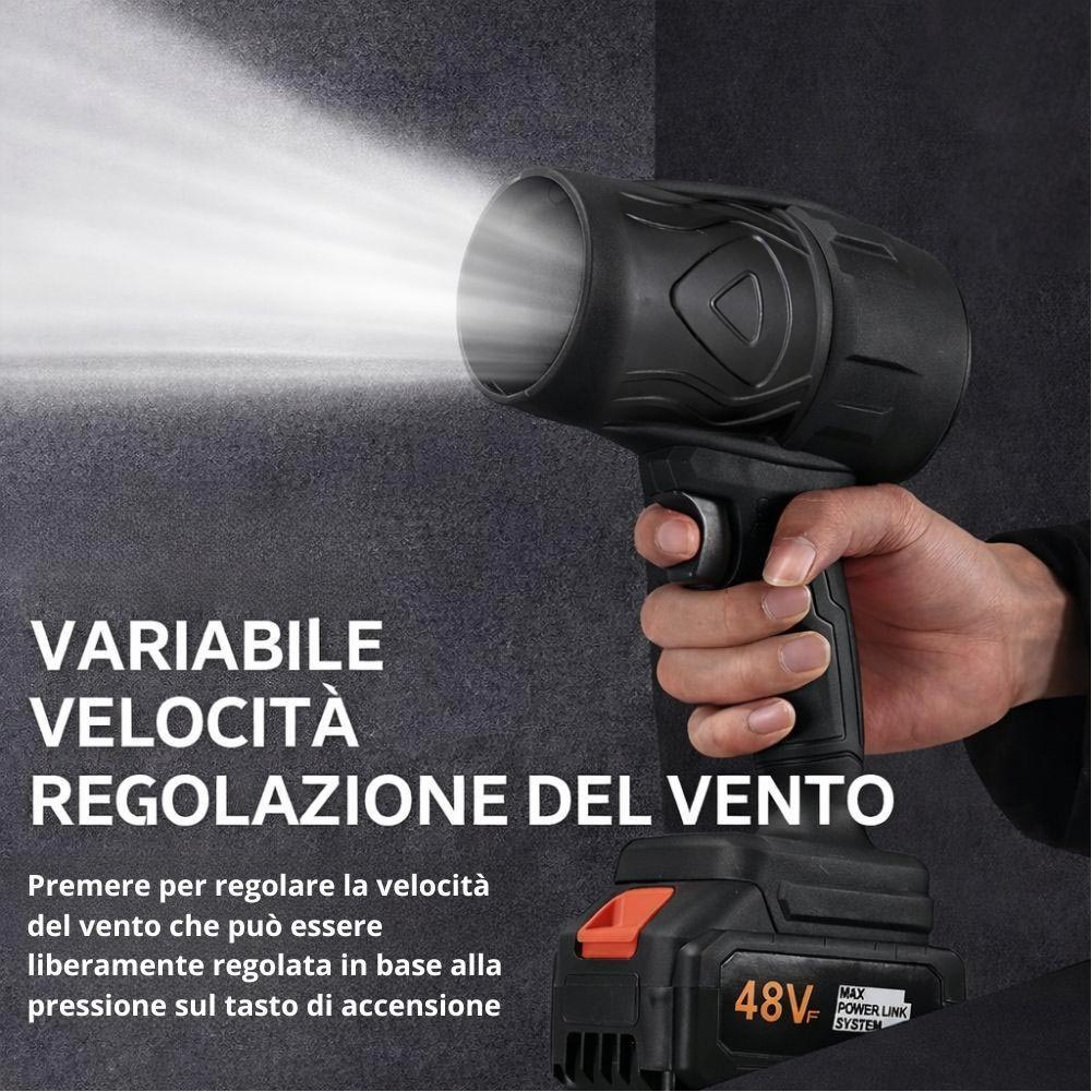 Il Soffiatore a Batteria è uno strumento compatto ma estremamente potente, progettato per offrire massime prestazioni in un formato maneggevole e senza fili. Il kit comprende 2 batterie al Litio, e il cavo di ricarica. Grazie alla batteria al litio da 48V, garantisce un flusso d'aria intenso e costante, ideale per operazioni di pulizia rapide ed efficaci. L'impugnatura ergonomica antiscivolo e il grilletto a pressione rendono l'uso semplice e confortevole anche per sessioni prolungate. È perfetto per eliminare polvere, foglie, sporco, residui e detriti da superfici difficili da raggiungere, come garage, balconi, officine, interni auto, attrezzature da lavoro, elettronica e spazi esterni. Il design robusto e compatto facilita il trasporto e lo stoccaggio, rendendolo sempre pronto all'uso. Uno strumento indispensabile per velocizzare le pulizie quotidiane e migliorare l'efficienza del lavoro.