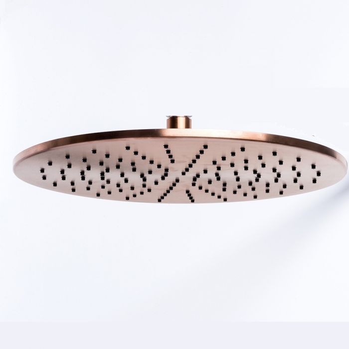 Soffione doccia tondo diametro 30 cm in acciaio inox 316L rame. Nati per essere contemporanei, le superfici lisce e pulite fanno dei rubinetti Tevere un accessorio di design per spazi moderni