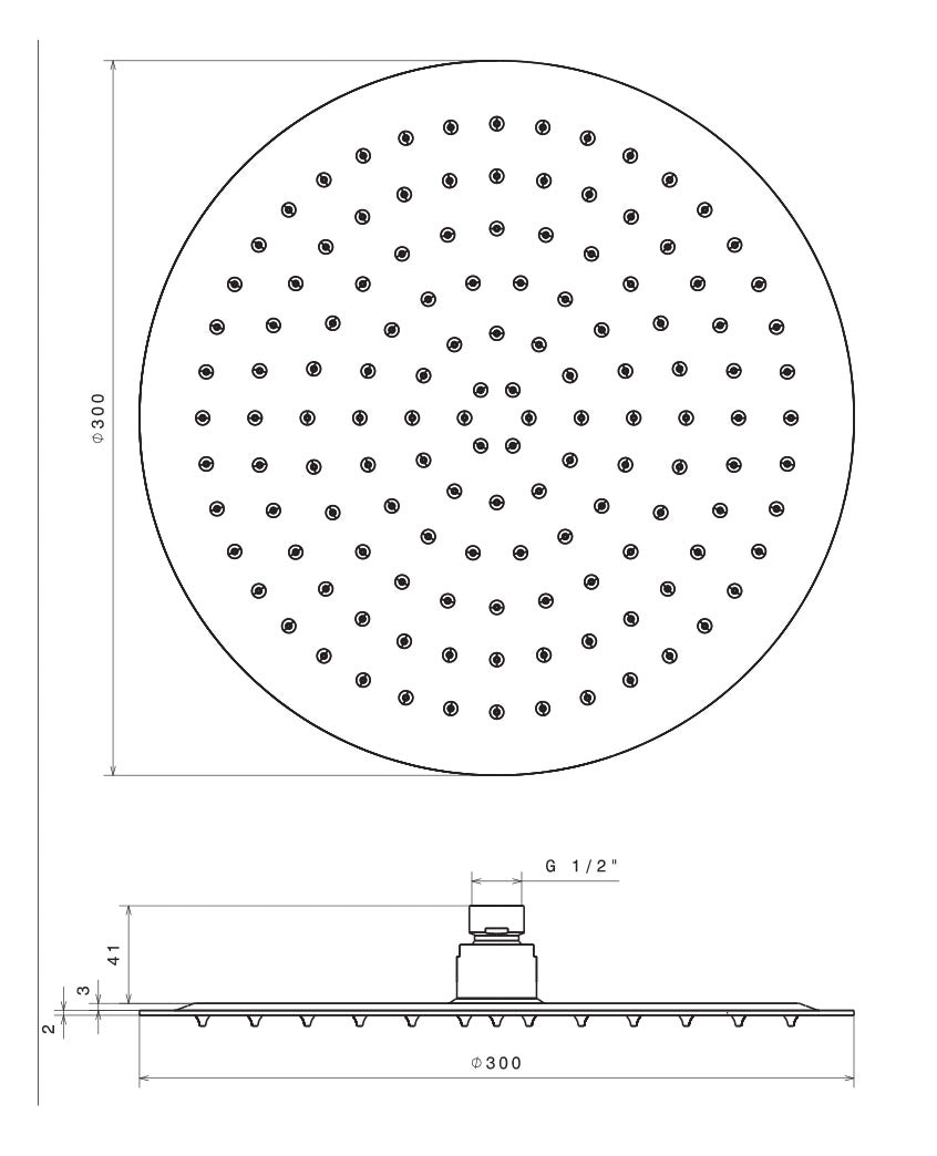 Pommeau de douche rond ultrafin en acier inoxydable avec jet pluie et diamètre 300 mm. Économie d'eau, design essentiel, vision entièrement italienne. Convient pour les douches.