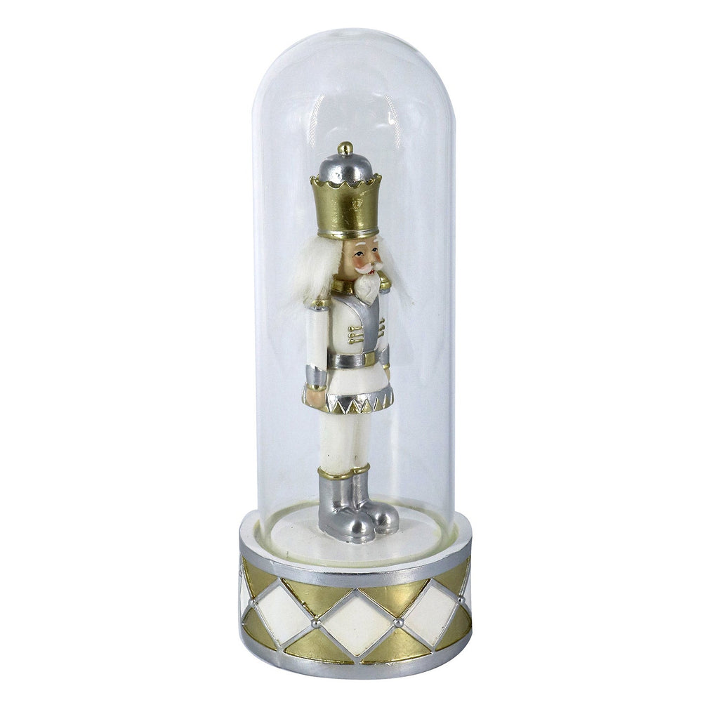 Soldat Casse-Noisette en résine, cloche en verre blanc cm 10x10xh26